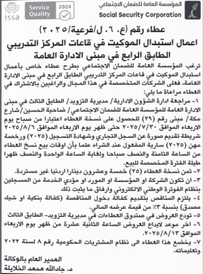 عطاء صادر عن المؤسسة العامة للضمان الاجتماعي