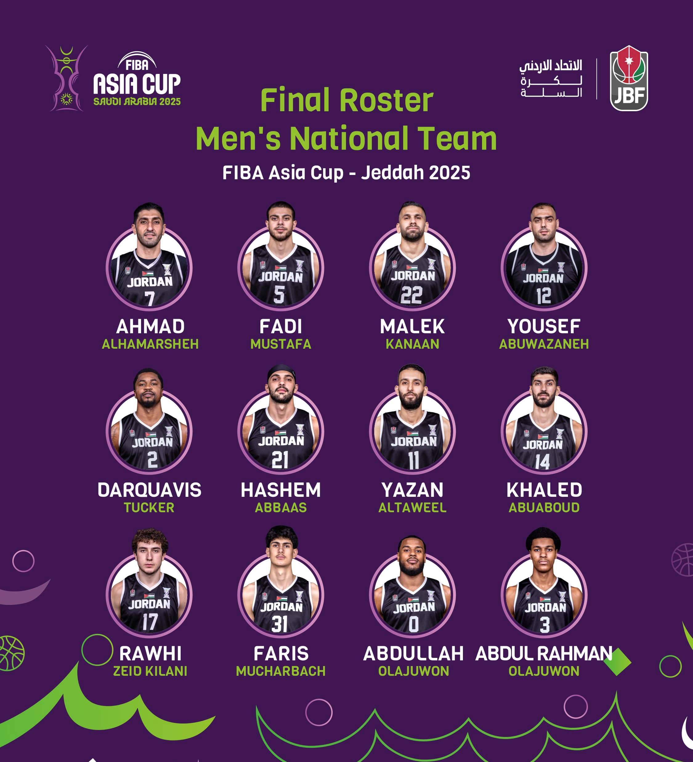 عمون - أعلن الجهاز الفني للمنتخب الوطني لكرة السلة للرجال، بقيادة الكندي روي رانا، القائمة النهائية المكونة من 12 لاعبًا، استعدادًا للمشاركة في نهائيات كأس آسيا، التي تُقام في مدينة جدة السعودية من 5 إلى 17 آب المقبل.