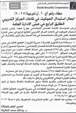 عطاء صادر عن المؤسسة العامة للضمان الاجتماعي