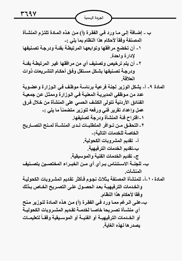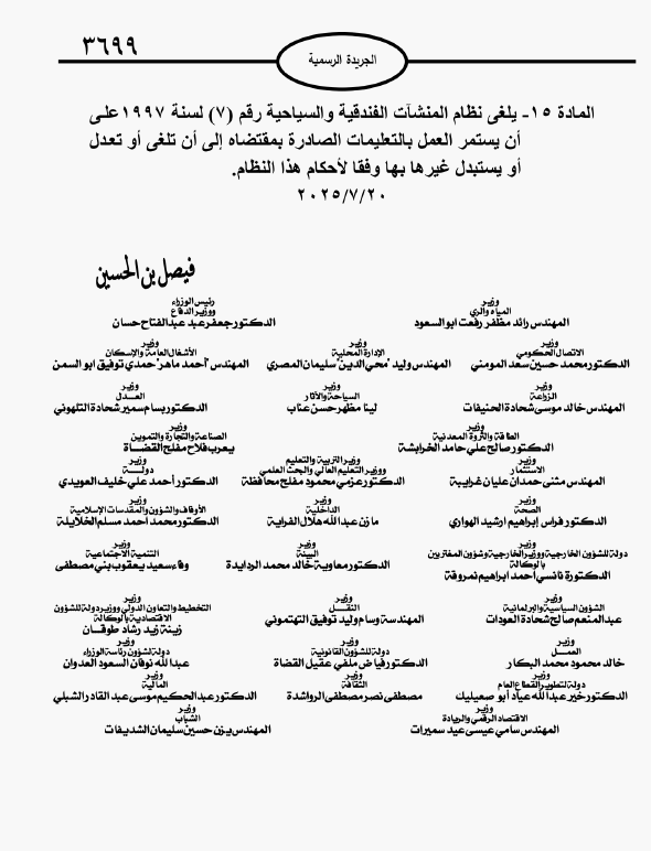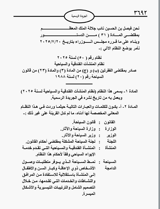 عمون - صدر في عدد الجريدة الرسمية اليوم الخميس، نظام المنشآت الفندقية والسياحية لسنة 2025م.
