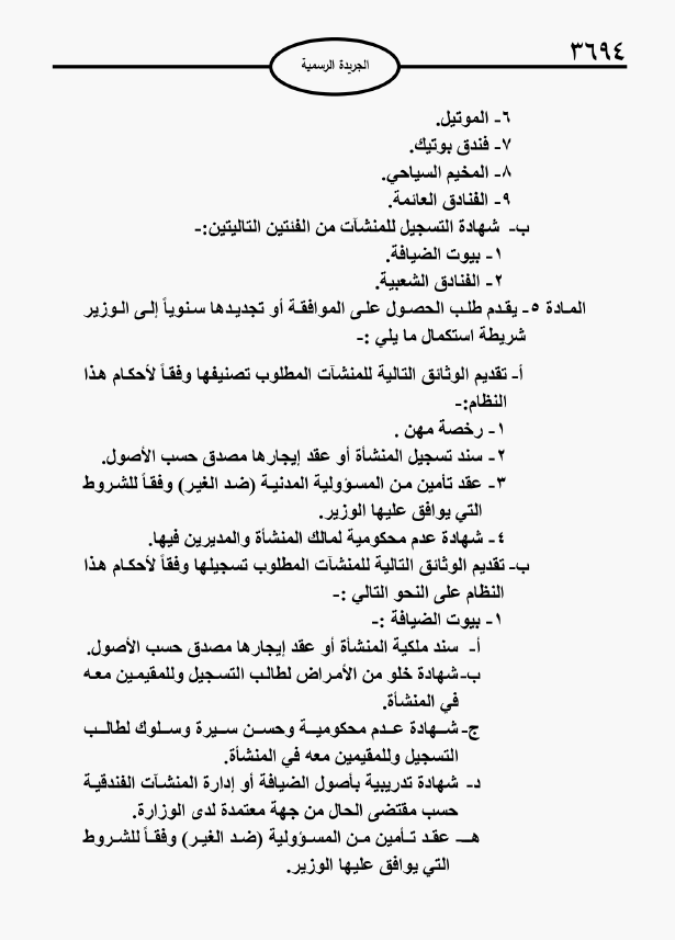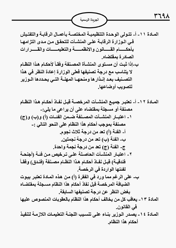 صدور نظام المنشآت الفندقية والسياحية في الجريدة الرسمية