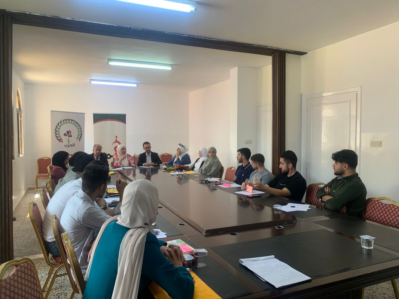 وقد حضر اللقاء ياسمين الزعبي و الدكتور بشار قبلان والمهندس معتز الحسن اعضاء اللجنة الانتقالية لفرع الحزب في اربد.