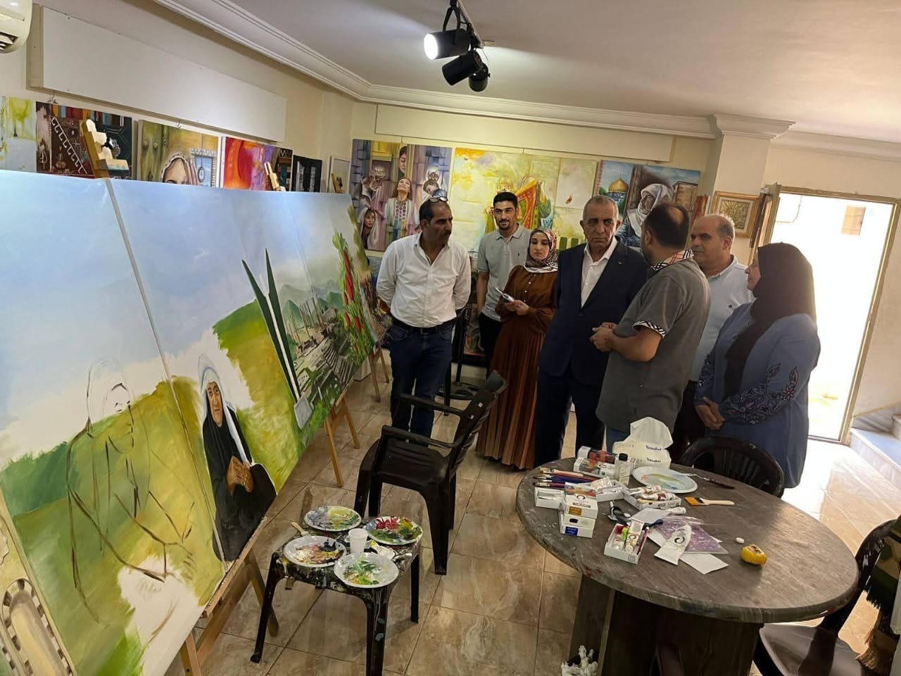 واعطى الفنان محمد هزايمة إيجازا عن مراحل العمل باللوحة لحين اكتمالها.