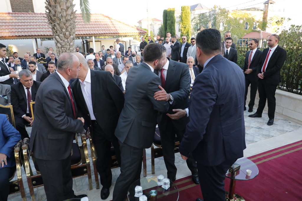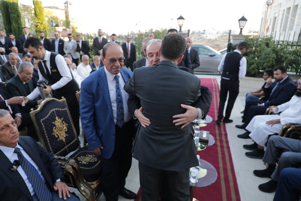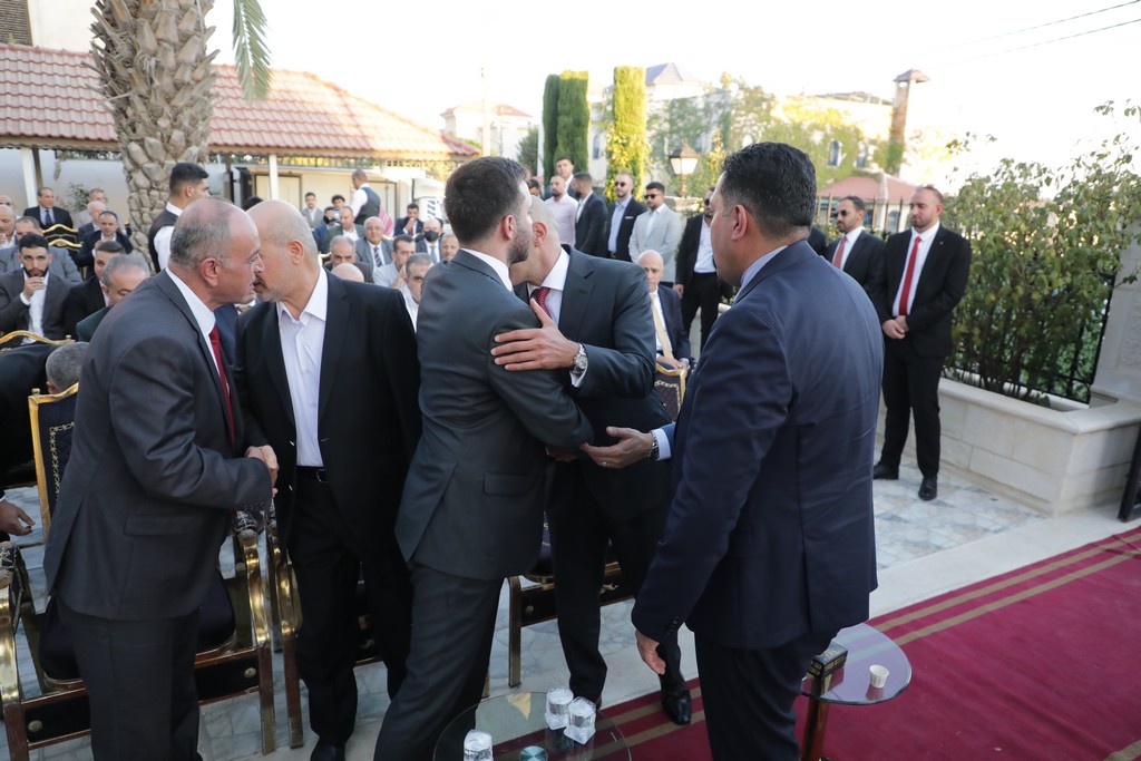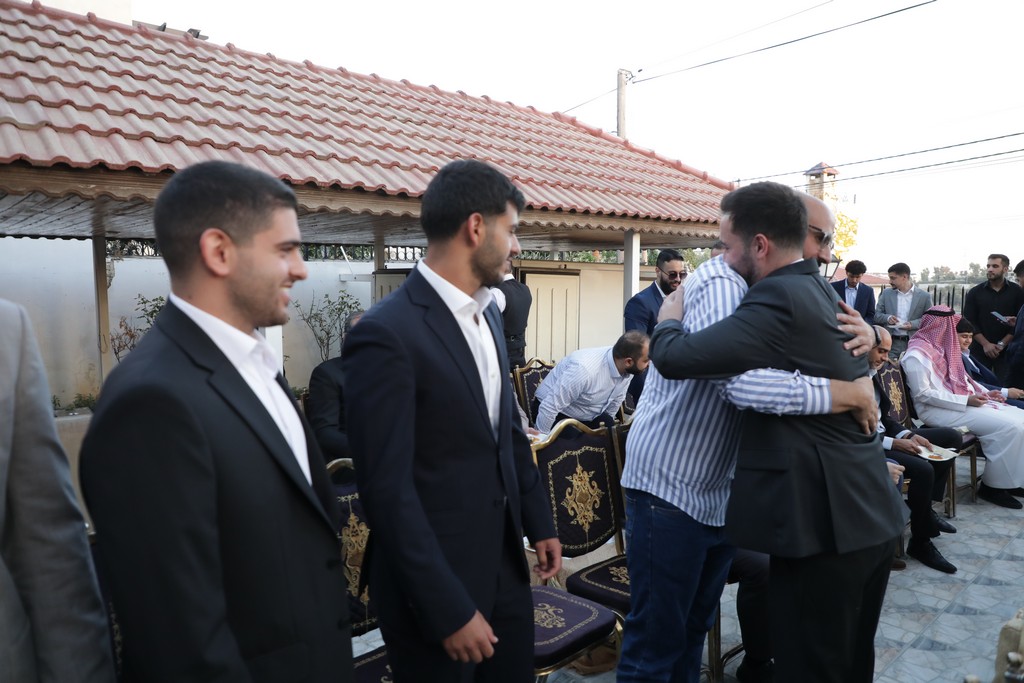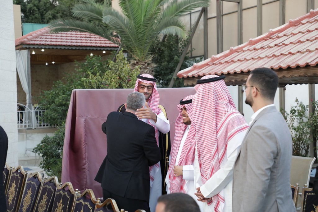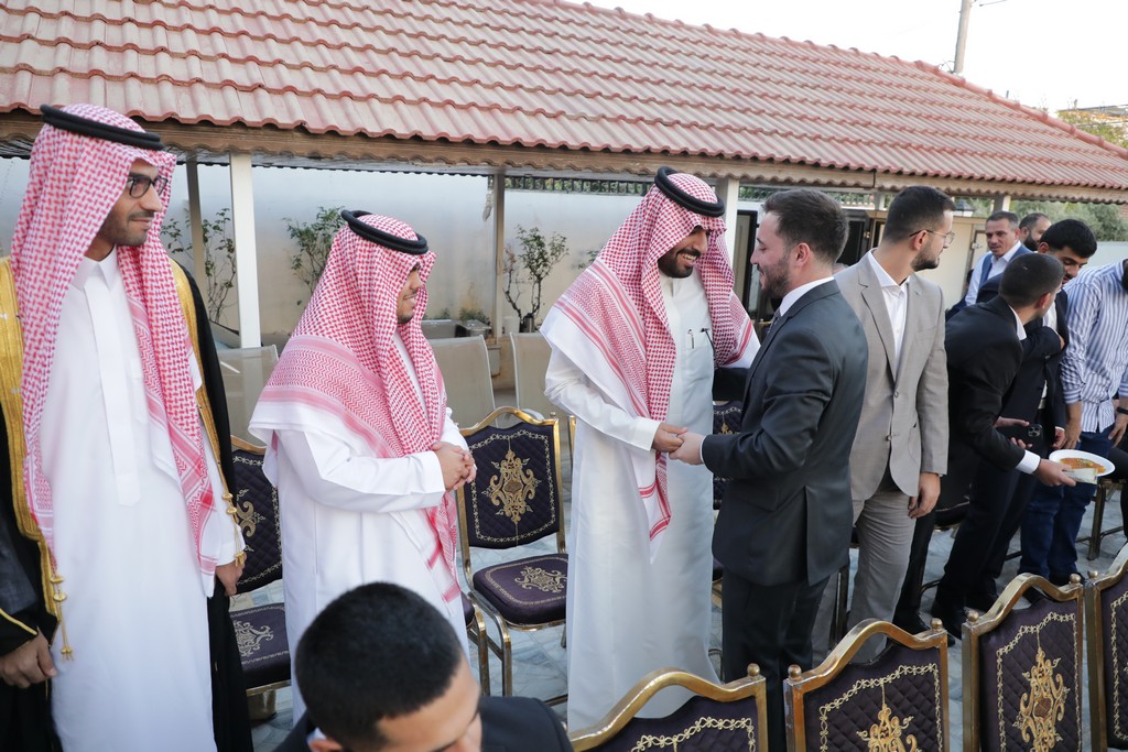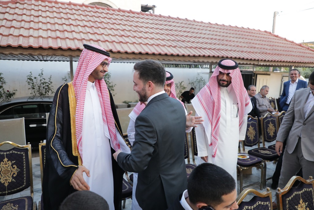 عمون - توجهت جاهة كريمة من آل عودة الى آل خضر،اليوم الجمعة، لطلب يد ابنتهم الآنسة تالا خالد شوكت خضر إلى ابنهم الشاب احمد عادل علي عودة . |