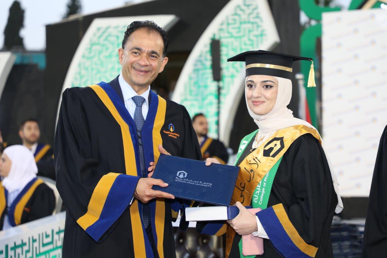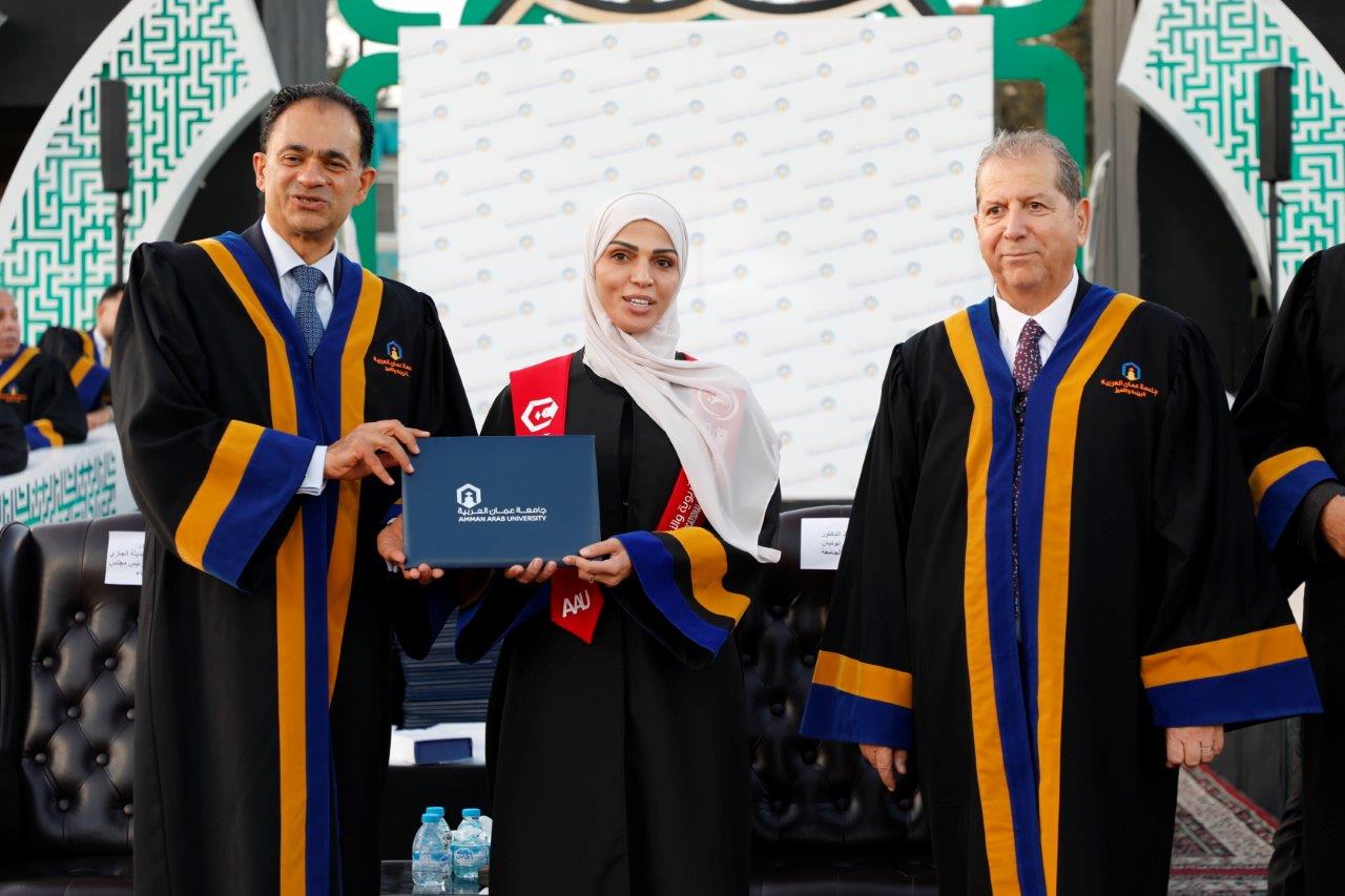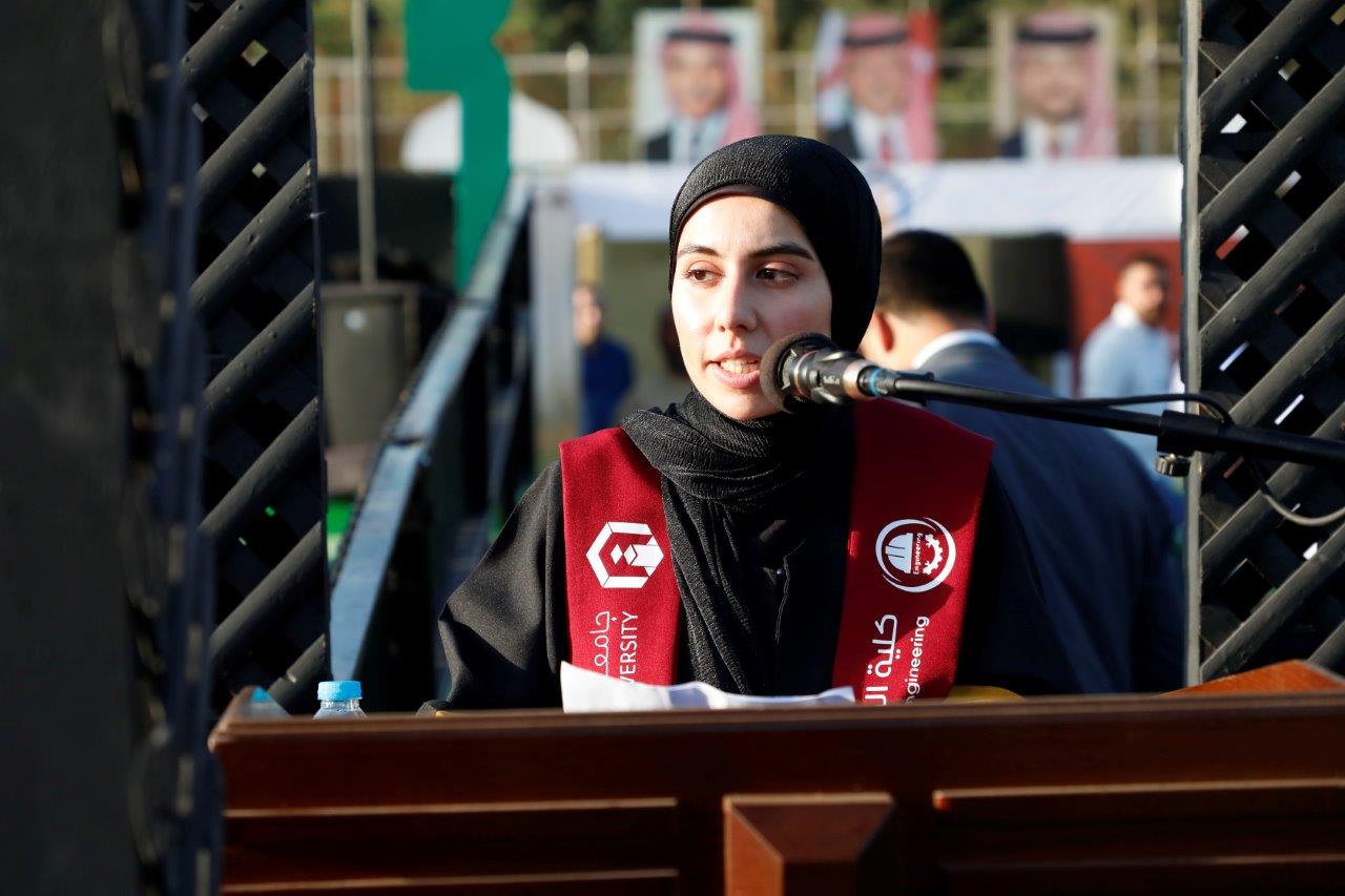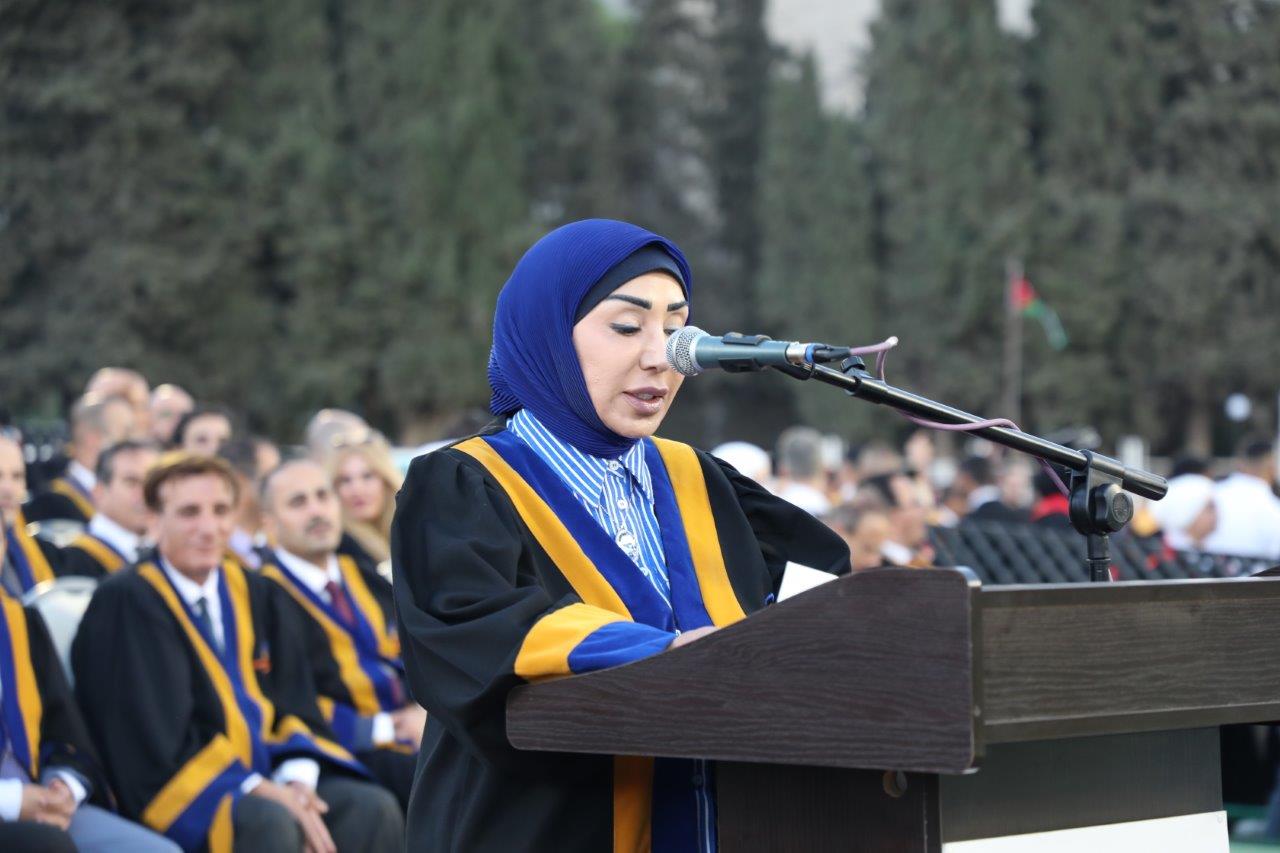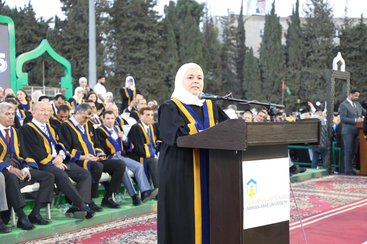 اما الخريجة سميرة الدويك فقد عبّرت خلال الكلمة التي ألقتها باسم زملائها الخريجين والخريجات، عن بالغ فخرها وامتنانها في هذا اليوم الذي يُتوّج سنوات من الكفاح والاجتهاد، ويشكّل لحظة مفصلية في مسيرتهم العلمية والإنسانية، مؤكدةً على أن جامعة عمان العربية لم تكن مجرّد مؤسسة أكاديمية، بل كانت بيتًا دافئًا وملاذًا آمنًا احتضن طموحاتهم، وصاغ ملامح مستقبلهم، وغرس فيهم قيم الانتماء، والإصرار والمسؤولية، كما وجّهت رسالة شكر لأساتذتها الذين آمنوا بقدرات الطلبة، ولذوي الطلبة الذين ساندوهم بصمت وتفانٍ حتى لحظة التتويج، واختتمت الدويك كلمتها بتأكيدها أن هذا اليوم هو بداية لا نهاية، ووعد لا وداع، داعية زملاءها ليكونوا بناةً لمستقبل الوطن، في ظل القيادة الهاشمية المظفّرة بقيادة جلالة الملك عبدالله الثاني ابن الحسين حفظه الله ورعاه.