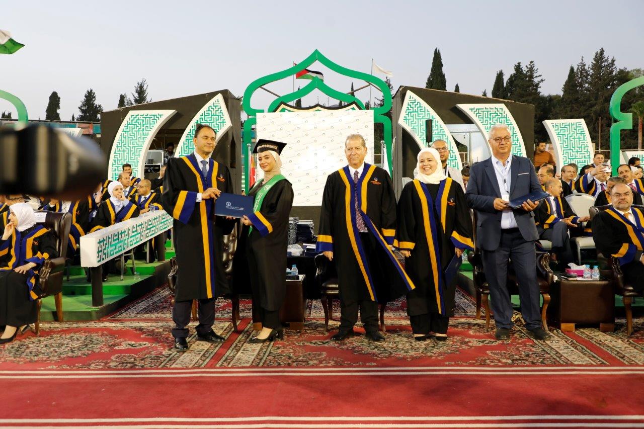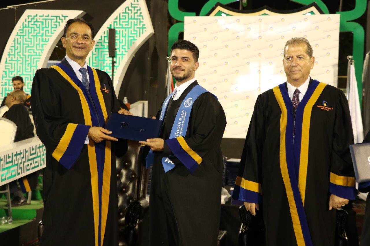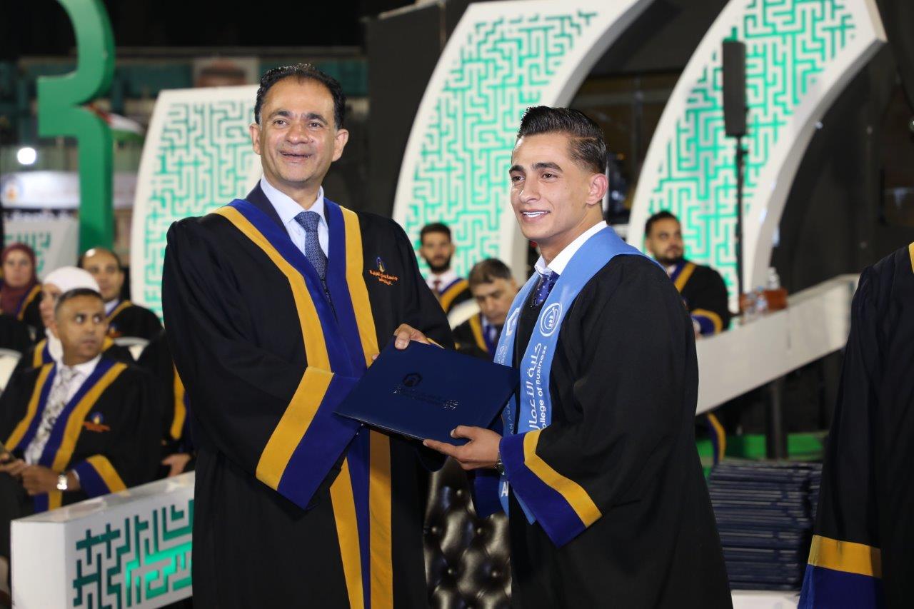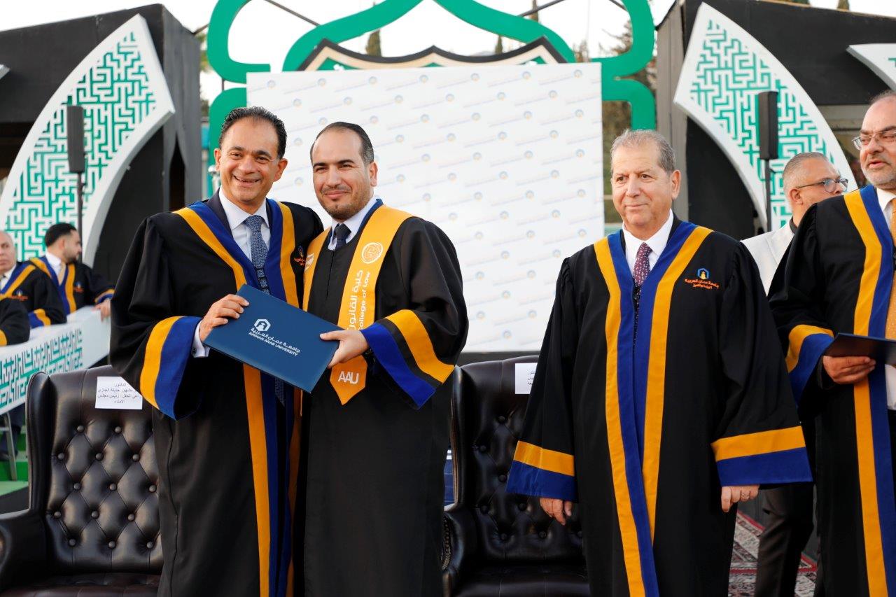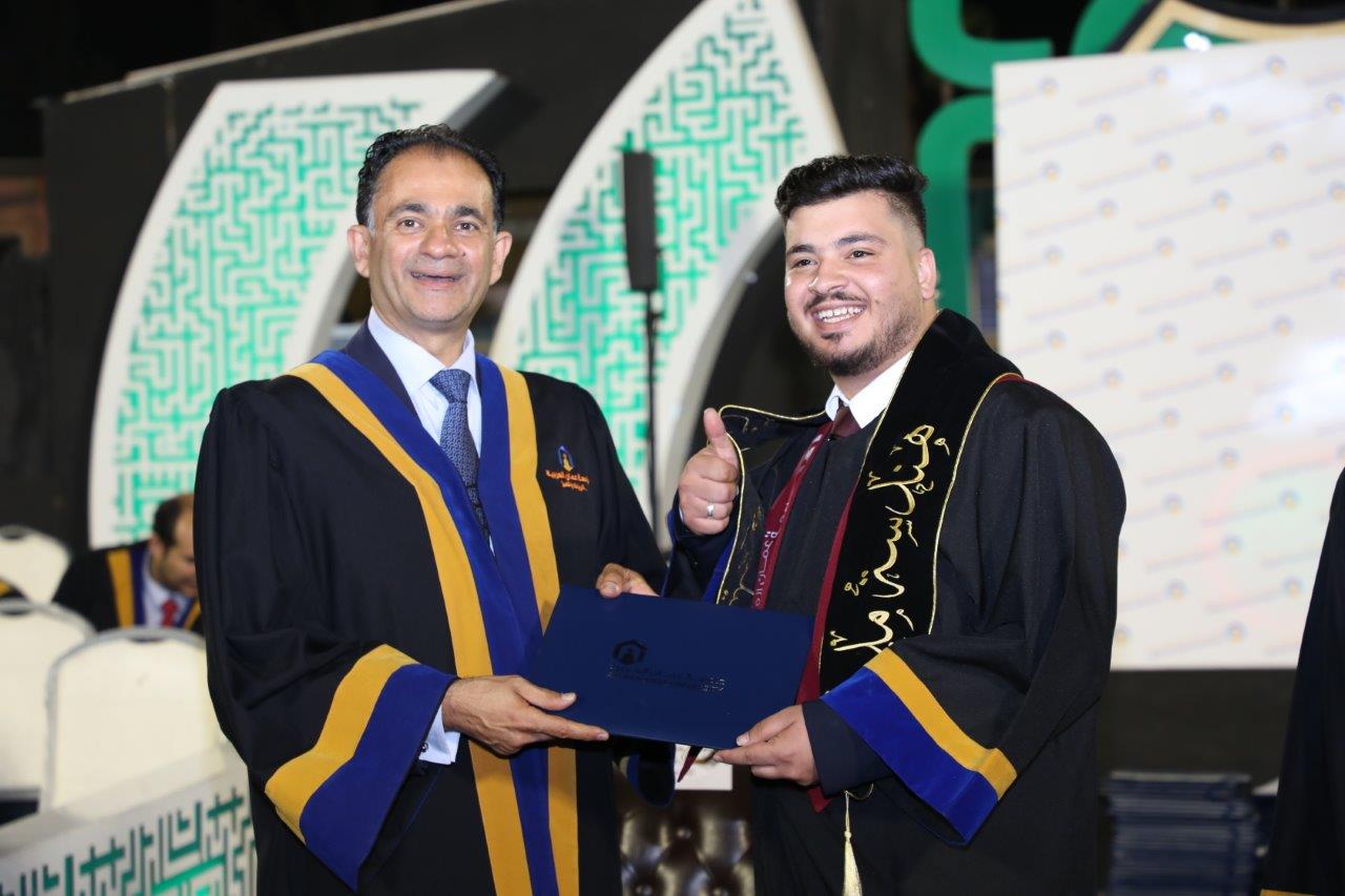 وأكد الوديان أن هذه الإنجازات لم تكن لتتحقق لولا الدعم المتواصل من هيئة المديرين ومجلس الأمناء، مشيداً بحضور المهندس أحمد الخالد رئيس هيئة المديرين من دولة الكويت الشقيقة، والدكتور محمد الأنصاري عضو مجلس الأمناء من دولة قطر الشقيقة، كما توجه بالتهنئة إلى الطلبة وذويهم، داعياً الخريجين إلى أن يكونوا أدوات بناء وعمل وسفراء لجامعتهم يحملون رسالتها وقيمها في كل مكان.