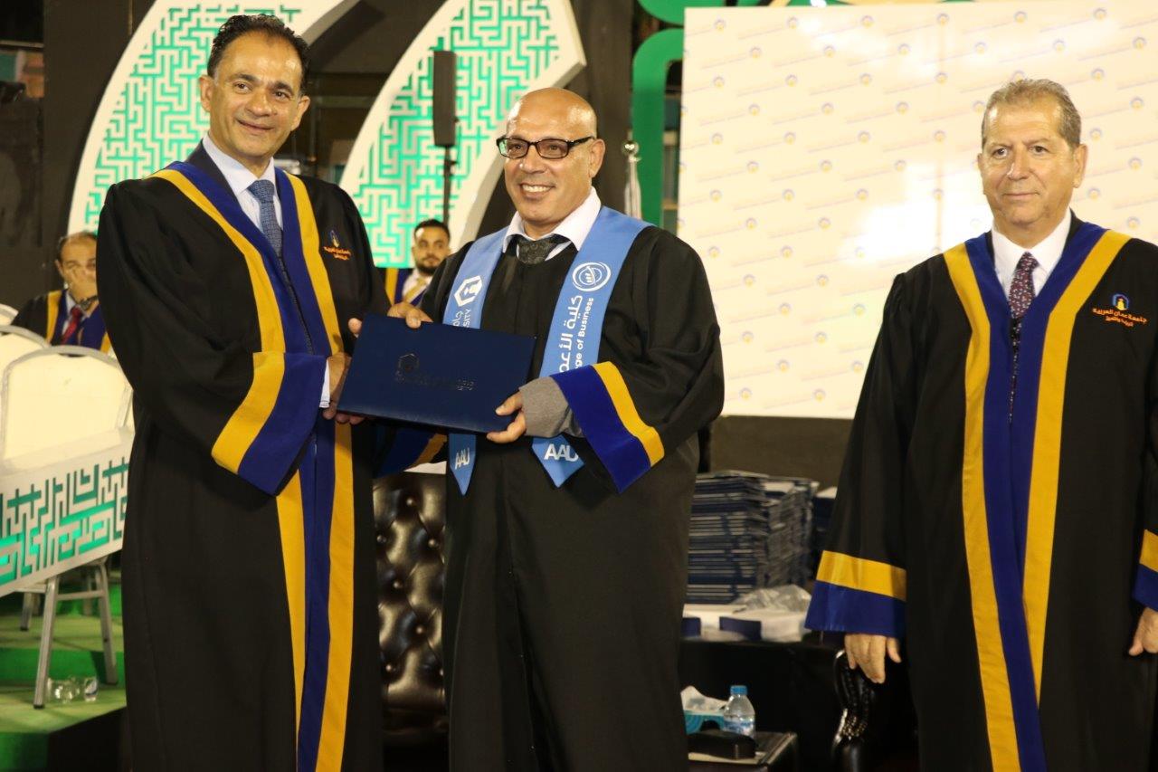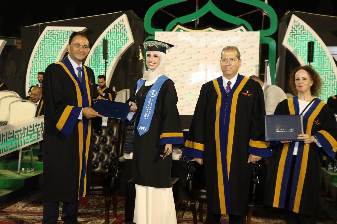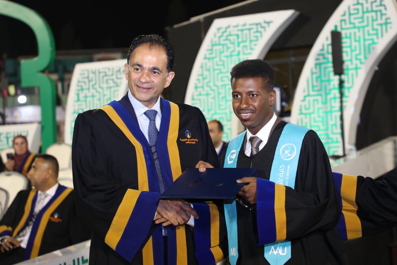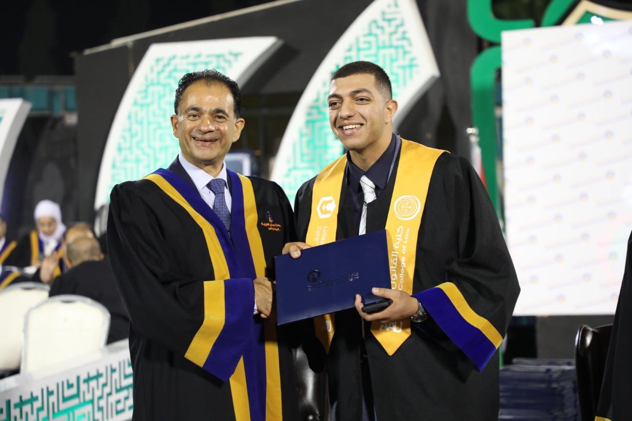 وأكد الوديان أن هذه الإنجازات لم تكن لتتحقق لولا الدعم المتواصل من هيئة المديرين ومجلس الأمناء، مشيداً بحضور المهندس أحمد الخالد رئيس هيئة المديرين من دولة الكويت الشقيقة، والدكتور محمد الأنصاري عضو مجلس الأمناء من دولة قطر الشقيقة، كما توجه بالتهنئة إلى الطلبة وذويهم، داعياً الخريجين إلى أن يكونوا أدوات بناء وعمل وسفراء لجامعتهم يحملون رسالتها وقيمها في كل مكان.