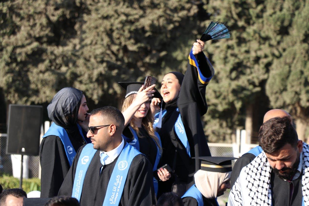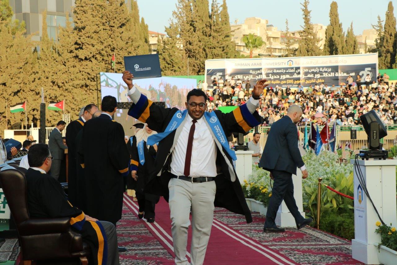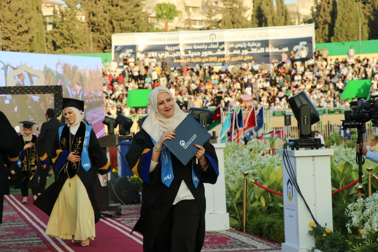 عمون - في أجواءٍ من الفخر والاعتزاز وبرعاية رئيس مجلس أمناء جامعة عمان العربية الدكتور عمر مشهور الجازي وبحضور كل من : الأستاذ الدكتور محمد الوديان رئيس جامعة عمان العربية، والأستاذ الدكتور إسماعيل يامين مساعد الرئيس للشؤون الأكاديمية ، والأستاذ الدكتور حسام الحمد مساعد رئيس الجامعة للتخطيط وضمان الجودة، والسيدة نادية القديمات مساعد رئيس الجامعة للشؤون المالية والإدارية، احتفلت جامعة عمان العربية بتخريج الفوج الخامس والعشرين من طلبة الجامعة، بمشاركة كوكبة متميزة من الخريجين من داخل الأردن ومن الوافدين من مختلف الدول الشقيقة والصديقة، ليشكلوا معًا لوحة تنوّع أكاديمي وثقافي تعكس المكانة الإقليمية المتقدمة للجامعة، والذي أقيم في رحاب الجامعة الأردنية.