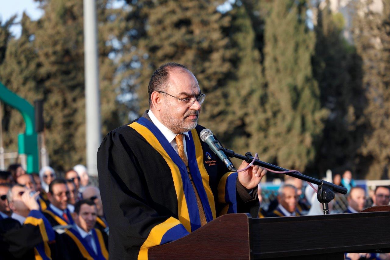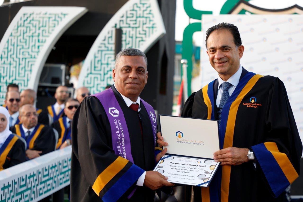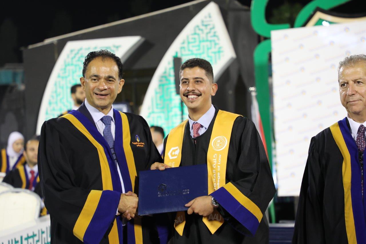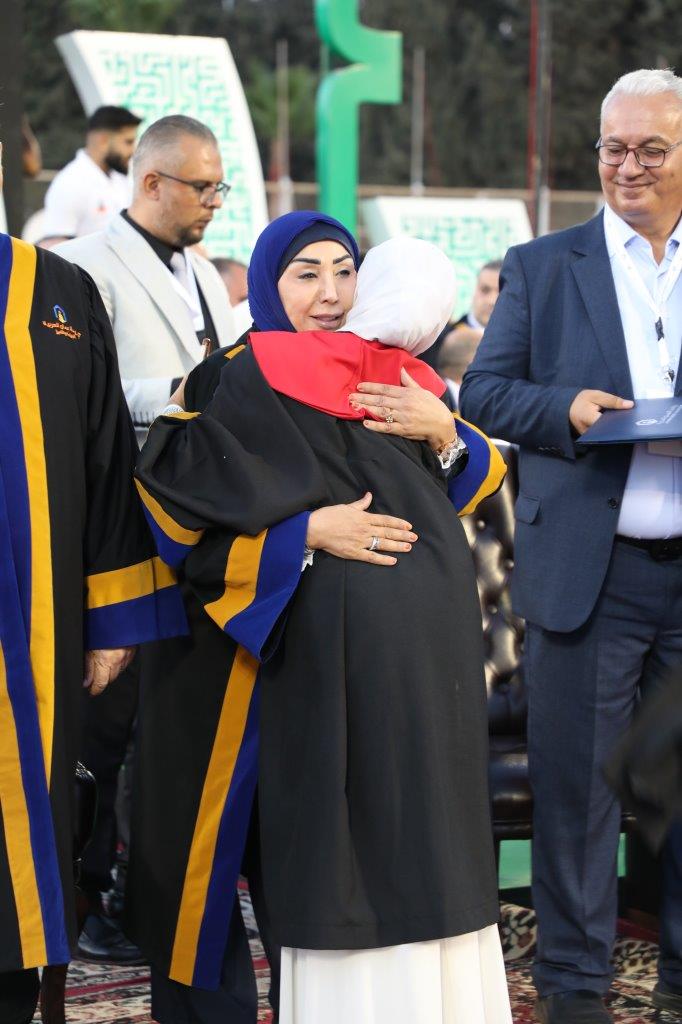 وأكد الجازي على أن هذا الإنجاز الجامعي لم يكن ليتحقق لولا الرؤية الواضحة التي تنتهجها الجامعة في تطوير برامجها الأكاديمية، والاهتمام بجودة التعليم وربط المخرجات بسوق العمل، مشددًا على أن الجامعة استطاعت أن تسهم بدور محوري في رفد مؤسسات الوطن بالكفاءات المتميزة، كما أشاد بالمستوى الرفيع الذي وصلت إليه الجامعة على المستويين المحلي والدولي، بفضل تكاتف الجهود والعمل المؤسسي، وبدعم متواصل من مجلس الأمناء وهيئة المديرين ورئاسة الجامعة ، ووجّه الدكتور الجازي رسالة من القلب إلى أهالي الطلبة، مثمنًا تضحياتهم النبيلة ودورهم الجوهري في دعم أبنائهم ومساندتهم خلال مسيرتهم الأكاديمية وقال: "ما كان لهذا النجاح أن يُنجز لولا دعاؤكم، وصبركم، وتضحياتكم، فأنتم شركاء الإنجاز ورفقاء الحلم منذ بدايته" ، وأشار الجازي إلى أنه وفي غمرة هذه الفرحة لا ننسى أن نُرسل قلوبنا إلى غزة الأبية وفلسطين العزيزة حيث البطولة تتجلى في وجه الظلم ، وحيث يَصنع الأحرار المجد بالصبر والثبات ، ففلسطين يا أبنائي هي قضيتنا الأولى ، وأنها ليست فقط جُرحاً ، بل شرفٌ ووعدُ نصر لا يخبو ، والقدس ستبقى بإذن الله نبضاً في صدر الأمة لا يسكن وراية عزنا التي لا تنكسر ، ومؤكداً على أن جامعة عمان العربية ستظل وفية لعهدها، ماضية في أداء رسالتها التربوية والوطنية في إعداد أجيال تحمل مشعل العلم والإبداع وتنهض بالوطن وترتقي به، في ظل القيادة الهاشمية الحكيمة بقيادة جلالة الملك عبدالله الثاني ابن الحسين حفظه الله ورعاه.
