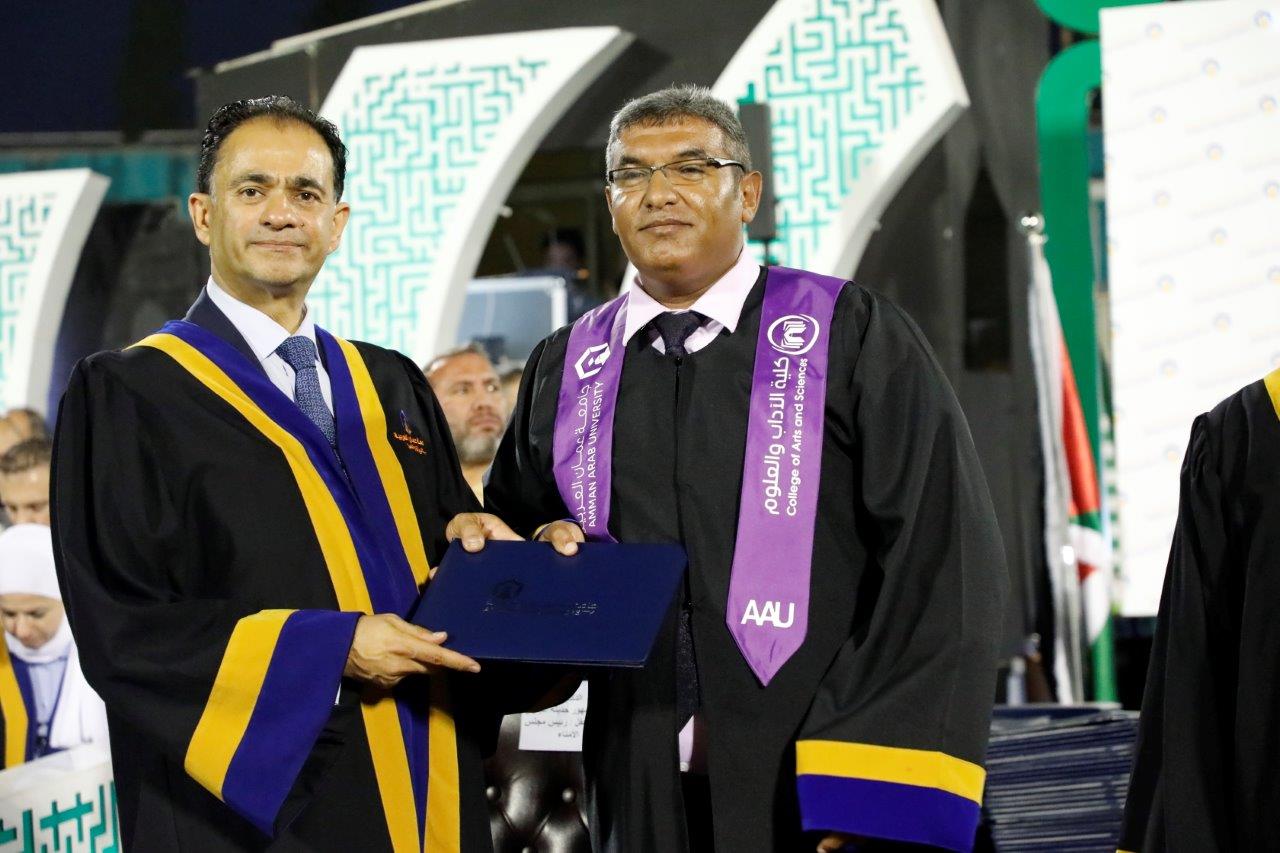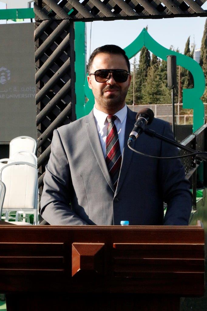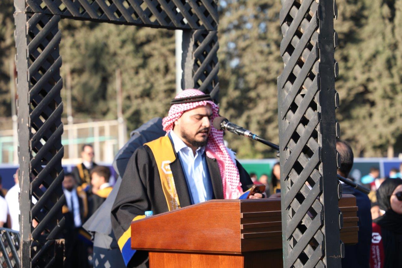 بدوره أكد الدكتور محمد بن طريف عميد شؤون الطلبة على أن جامعة عمان العربية لم تكن مجرّد حاضنة علم، بل كانت بيتًا دافئًا ومساحة للحلم وورشة لبناء الإنسان، احتضنت طلبتها لسنوات، وغذّتهم بالمعرفة، وآمنت بطاقاتهم وقدراتهم حتى بلغوا هذه اللحظة المشرقة، وأشار إلى أن الجامعة حرصت على صقل شخصية الطالب معرفيًا وإنسانيًا وغرس قيم الانتماء والمسؤولية والريادة في نفوسهم، ليكونوا فاعلين في مجتمعاتهم ومؤثرين في أوطانهم، مؤكداً بأن الخريجين اليوم ينطلقون من ميادين المعرفة إلى ميادين العمل وهم يحملون في أيديهم أدوات التغيير وفي قلوبهم جذوة الأمل، وفي عقولهم زاد العلم ، مُشيداً بدور أساتذتهم الأفاضل وذوي الخريجين، داعياً الخريجين إلى أن يكونوا عنوانًا للمستقبل وسفراء لجامعتهم في كل مكان يحملون اسمها بفخر، ويواصلون مسيرتهم بخطى واثقة وإرادة صلبة.