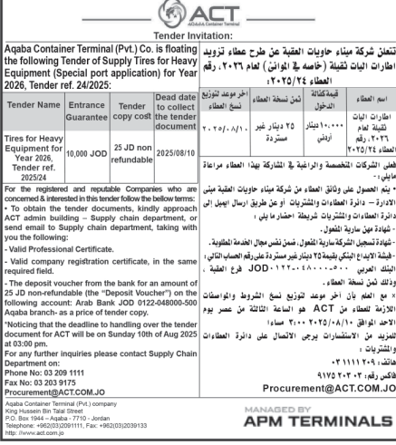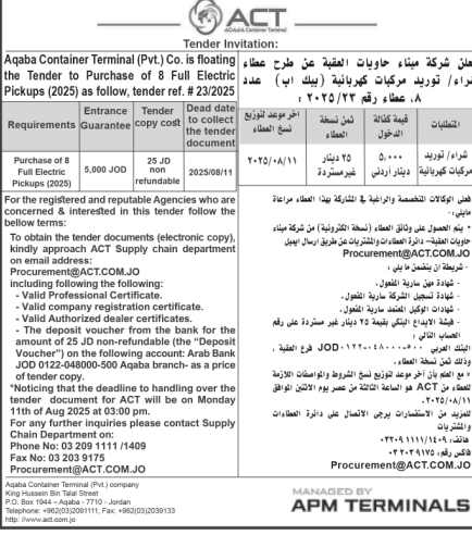 عطاءات صادرة عن شركة ميناء حاويات العقبة