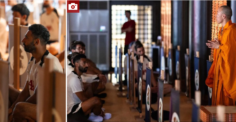 وظهر محمد صلاح في فيديو وصور شاركها الفريق الإنجليزي وهو يتجول رفقة زملائه في المعبد البوذي التاريخي، الذي يعد من أبرز المعالم السياحية في طوكيو التي تجذب الزوار من مختلف أنحاء العالم.
