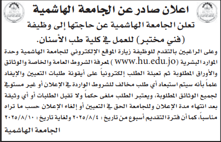وظيفة شاغرة لدى الجامعة الهاشمية