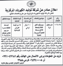 عطاء صادر عن شركة توليد الكهرباء المركزية