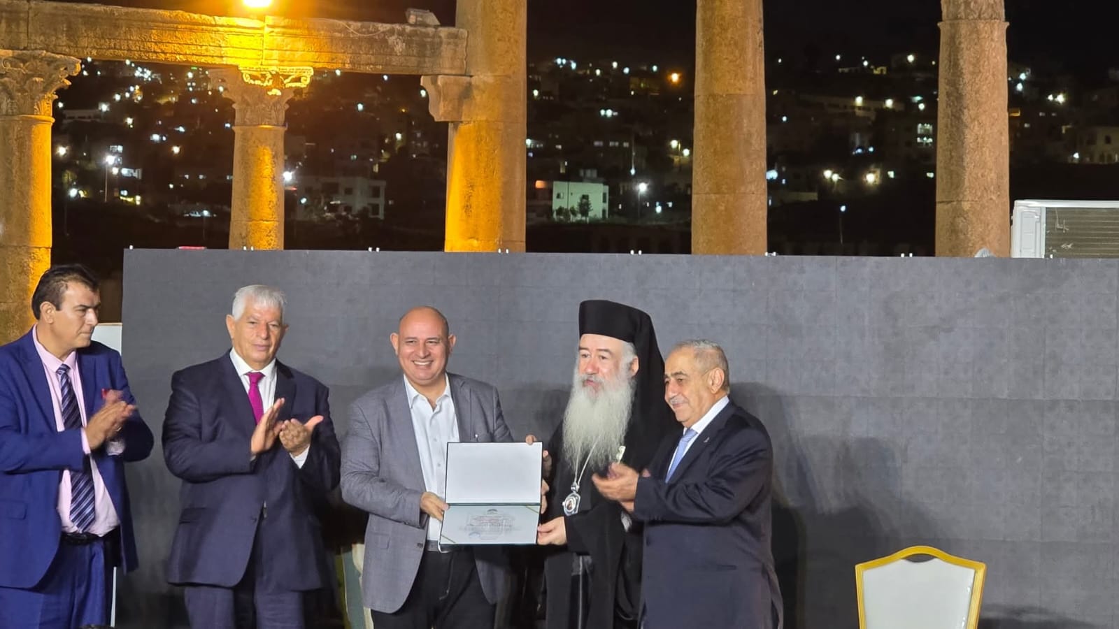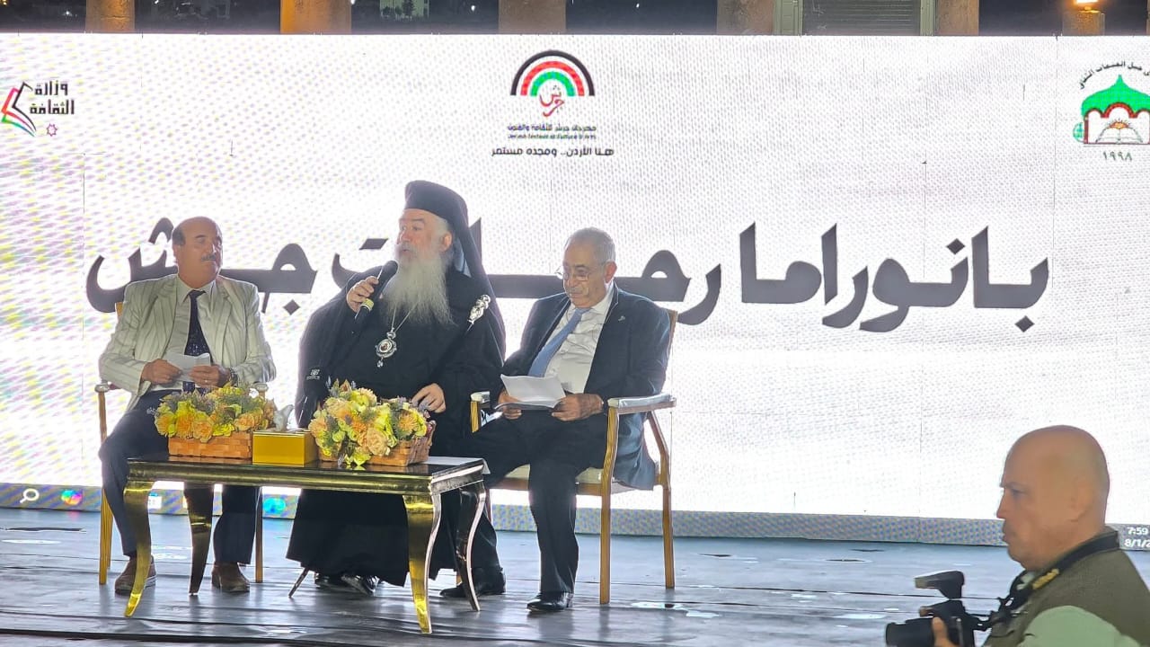 عمون - في مشهد يعكس أبهى صور التعايش الديني والوحدة الوطنية كرمت فعالية بانوراما رجالات جرش اللواء الطبيب الراحل عادل عيسى حداد أحد أبرز رموز الخدمة العسكرية والطبية في الأردن وذلك بحضور محافظ جرش الدكتور مالك خريسات ومعالي الدكتور عاطف عضيبات عضو اللجنة العليا لمهرجان جرش ومندوب عن وزير الثقافة وأمين عام وزارة الثقافة الدكتور نضال العياصرة وعدد من الشخصيات الوطنية والدينية الذين أجمعوا على أن حداد كان نموذجاً فريداً في الإخلاص والعطاء.