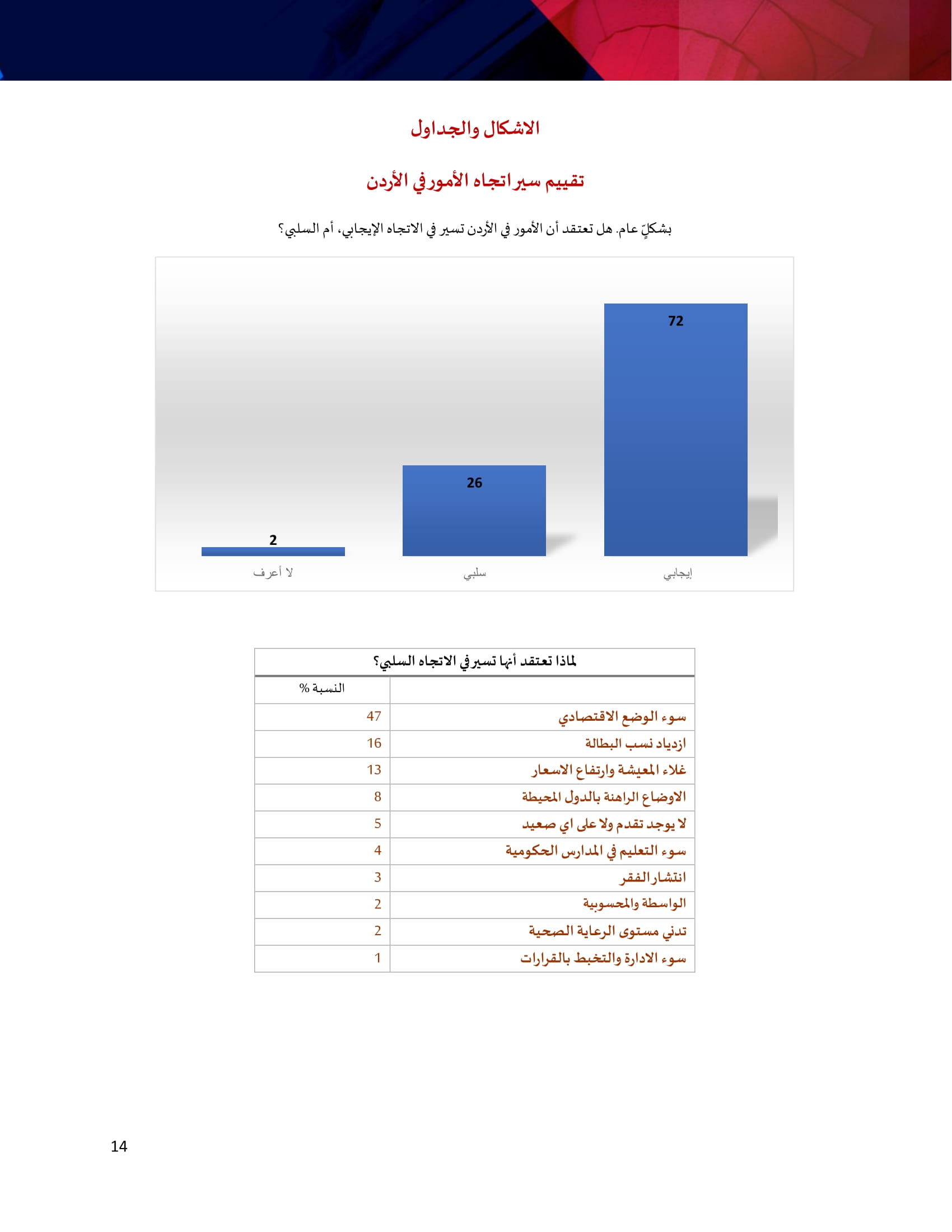 %72 من الأردنيين يرون الأمور تسير في الاتجاه الإيجابي