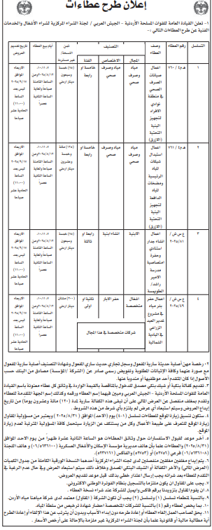 عطاءات صادرة عن القيادة العامة للقوات المسلحة الاردنية