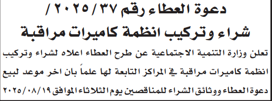 عطاء شراء وتركيب انظمة كاميرات مراقبة