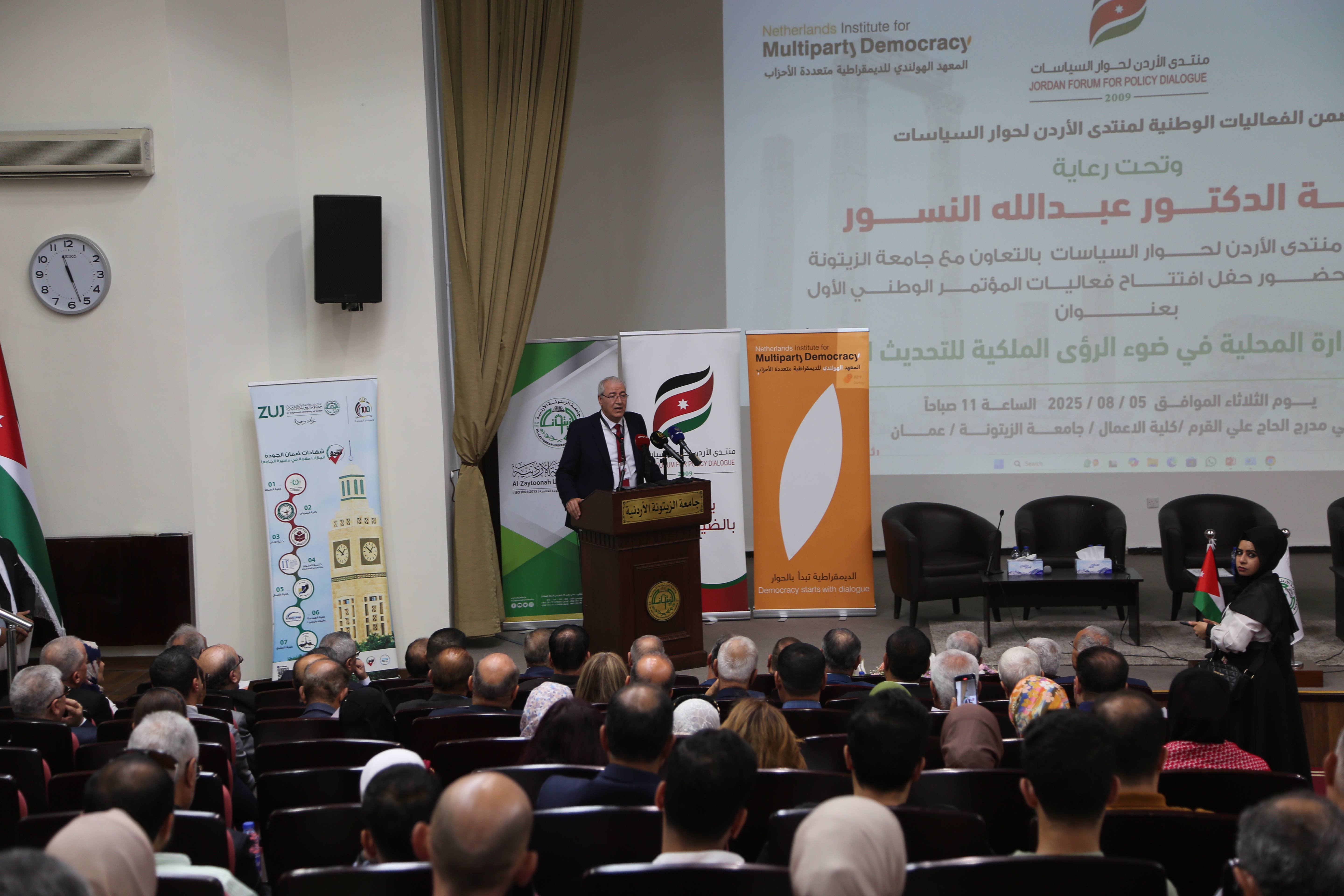 عمون - في إطار التوجهات الوطنية نحو تحديث الإدارة المحلية وتعزيز المشاركة المجتمعية في صناعة القرار، رعى دولة الدكتور عبدالله النسور، رئيس مجلس أمناء جامعة الزيتونة الأردنية، فعاليات المؤتمر الوطني الأول للإدارة المحلية: واقع وتطلعات، والذي نظمه منتدى الأردن لحوار السياسات، بالتعاون مع المعهد الهولندي للديمقراطية متعددة الأحزاب، واستضافته جامعة الزيتونة الأردنية.
