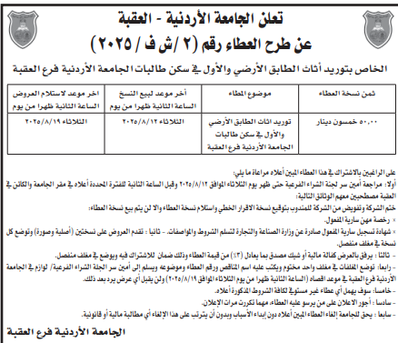 عطاء صادر عن الجامعة الاردنية - العقبة
