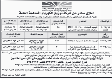 عطاءات صادرة عن شركة توزيع الكهرباء