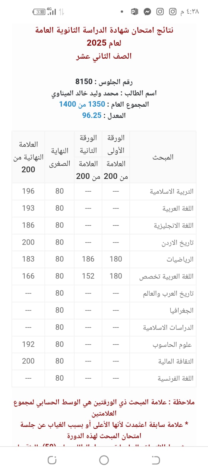 محمد وليد خالد ميناوي .. مبارك التفوق بنجاح 96.2%07-08-2025 05:10 PM