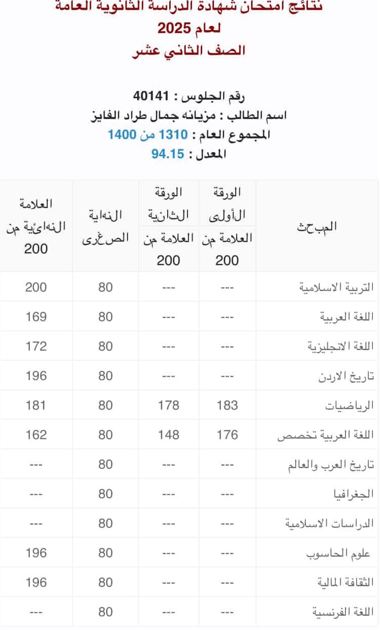 مزيانة جمال طراد الفايز .. مبارك النجاح07-08-2025 06:46 PM