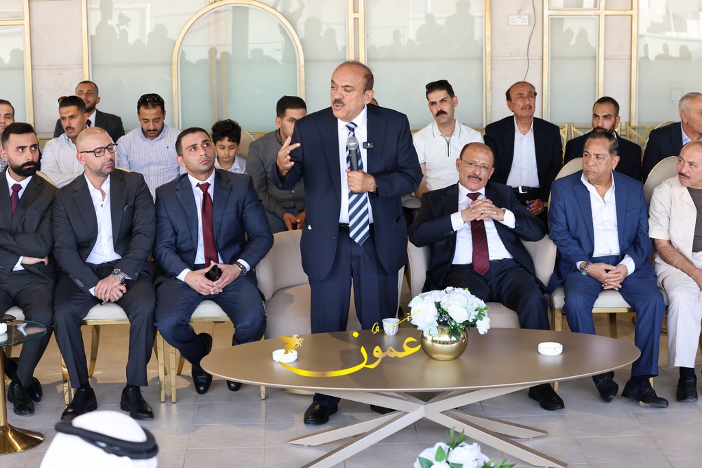 عمون - توجهت جاهة من عشيرة المجالي وأقربائهم وأنسبائهم إلى عشيرة الحديد لطلب يد ابنتهم مرام عبدالله الحديد، لابنهم العريس النقيب زيد محمد المجالي. |