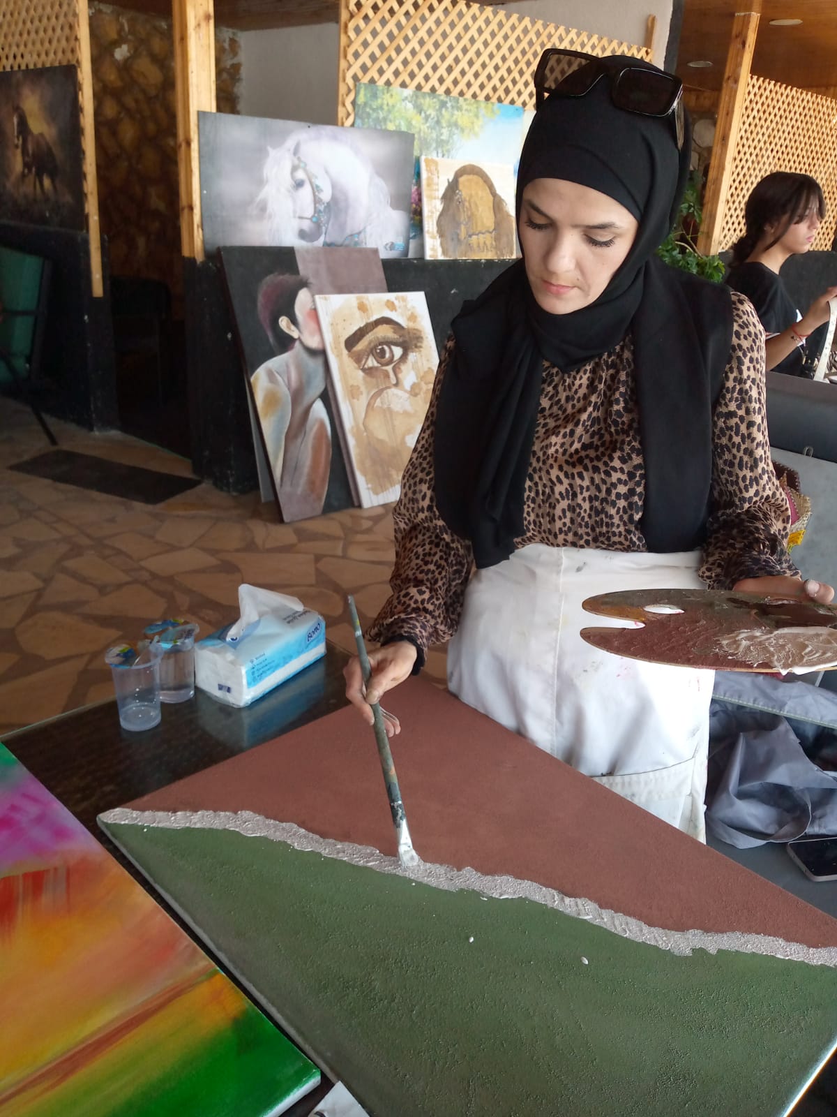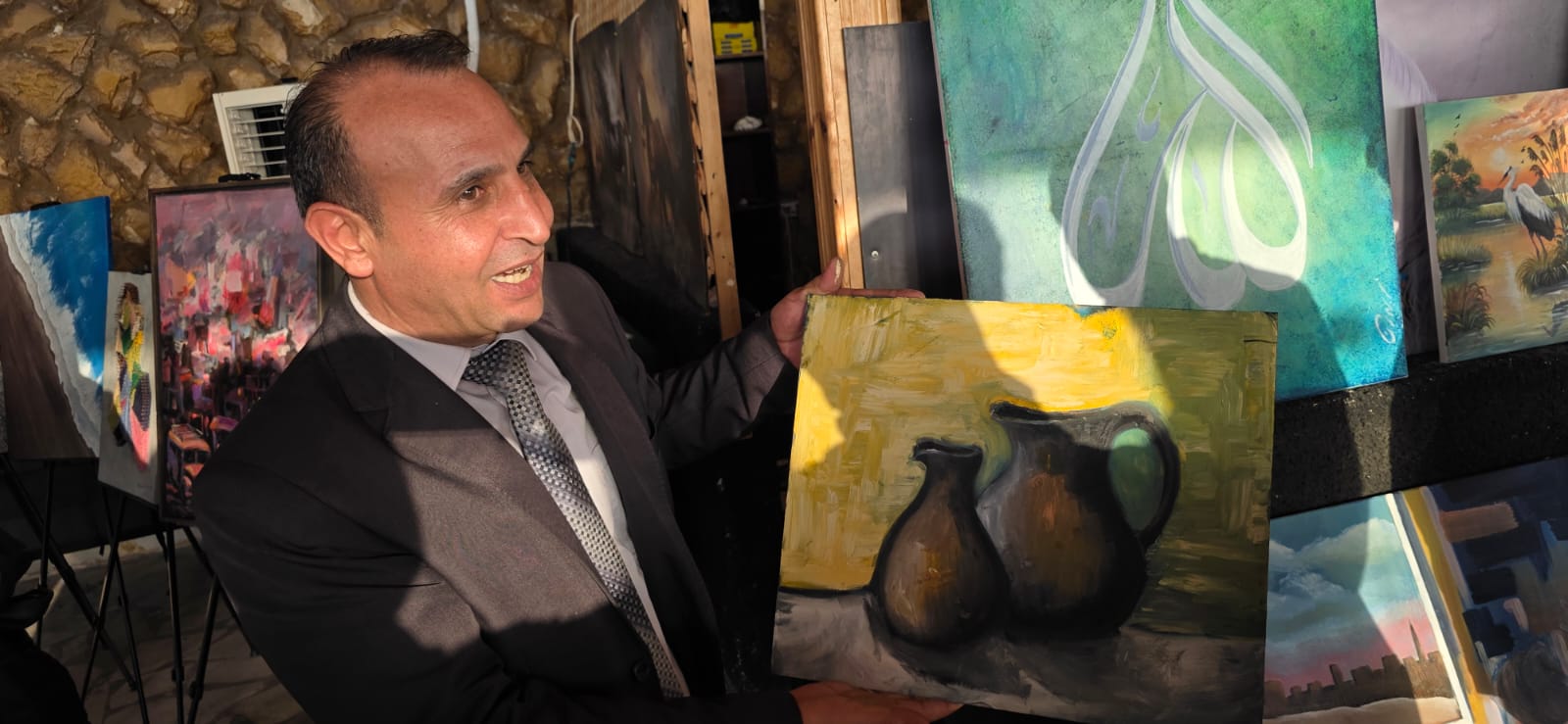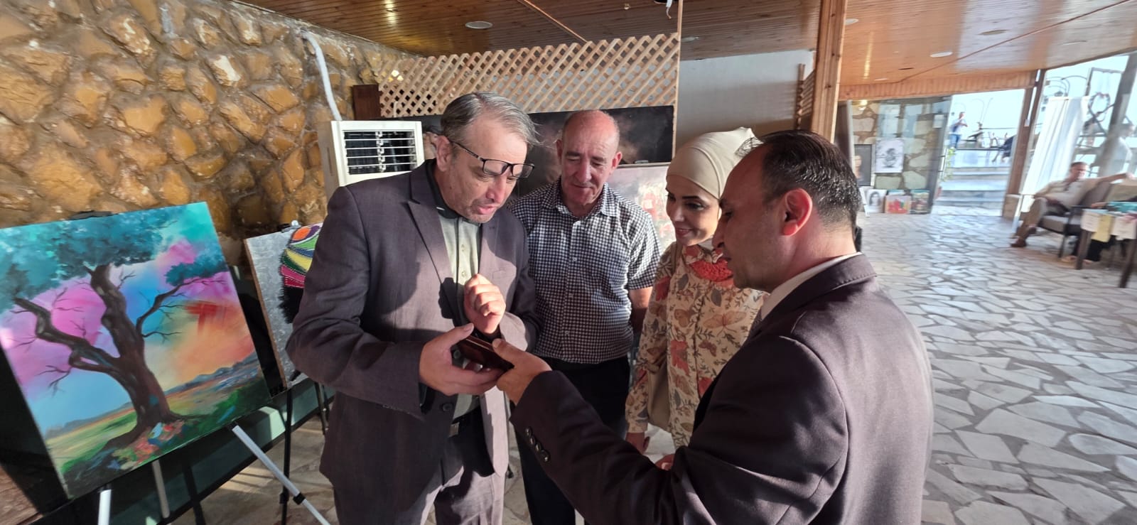 وتضمن الملتقى معرضا لعدد من اللوحات الفنية المتنوعة رسمها الفنانون المشاركون من دول السعودية، ومصر، وسوريا، والعراق بالإضافة إلى نخبة من الفنانين الأردنيين.