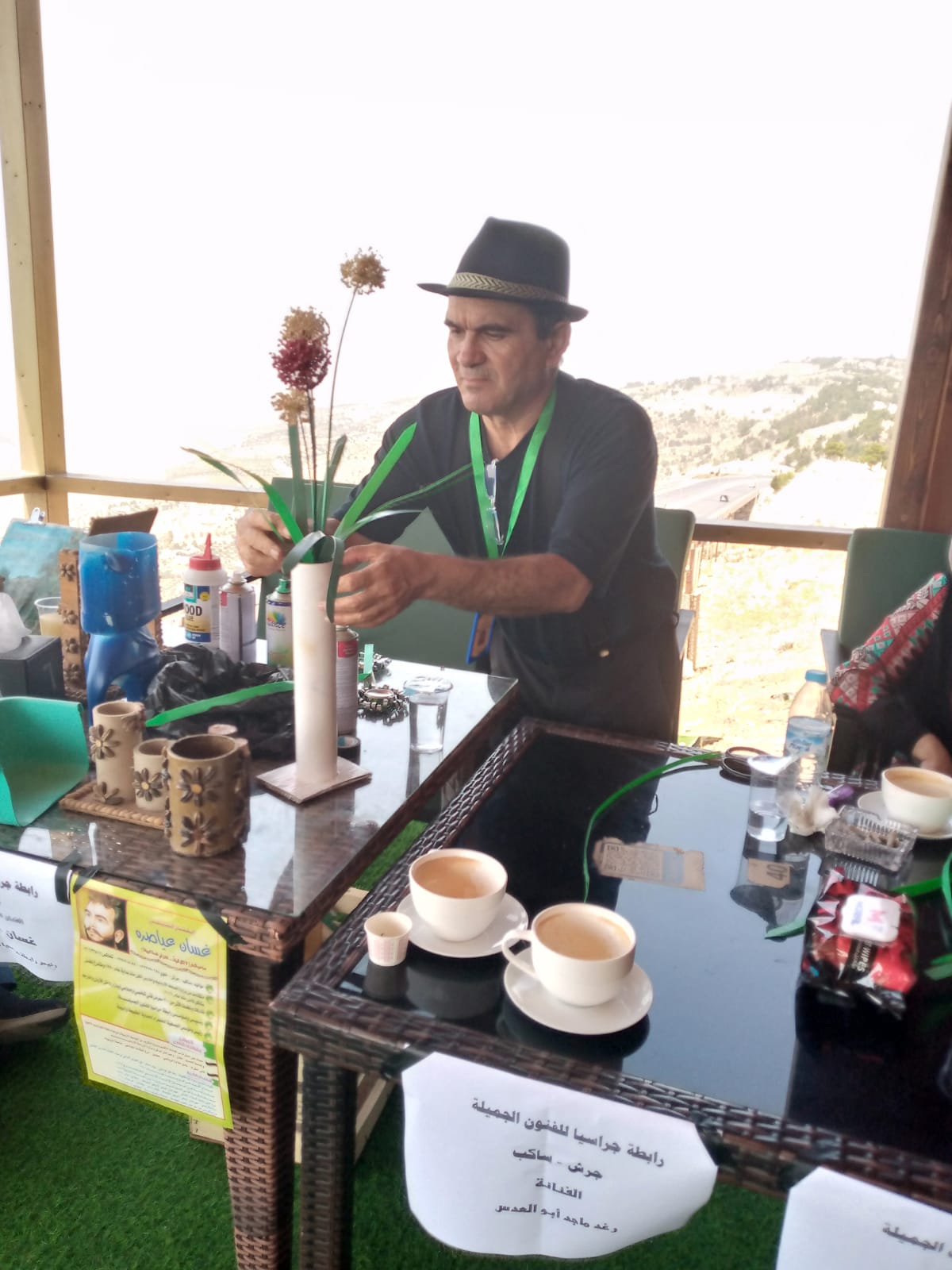 وحضر حفل الافتتاح منال البقور من مديرية الثقافة، وخالد الخالدي رئيس جمعية منتدى زوايا للثقافة والفنون وعدد من رؤساء الهيئات الثقافية وجمهور من المهتمين بالفن التشكيلي.