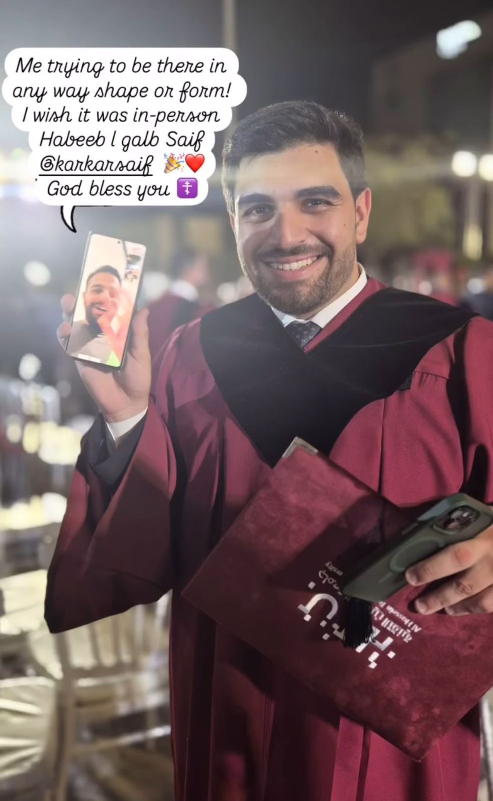 عمون - الأهل والأقارب والأصدقاء يهنئون ويباركون لابنهم "سيف" حنا افتيم كركر تخرجه من جامعة الحسين التقنية بتخصص الهندسة المدنية متمنين له التوفيق والنجاح في حياته العلمية والعملية .