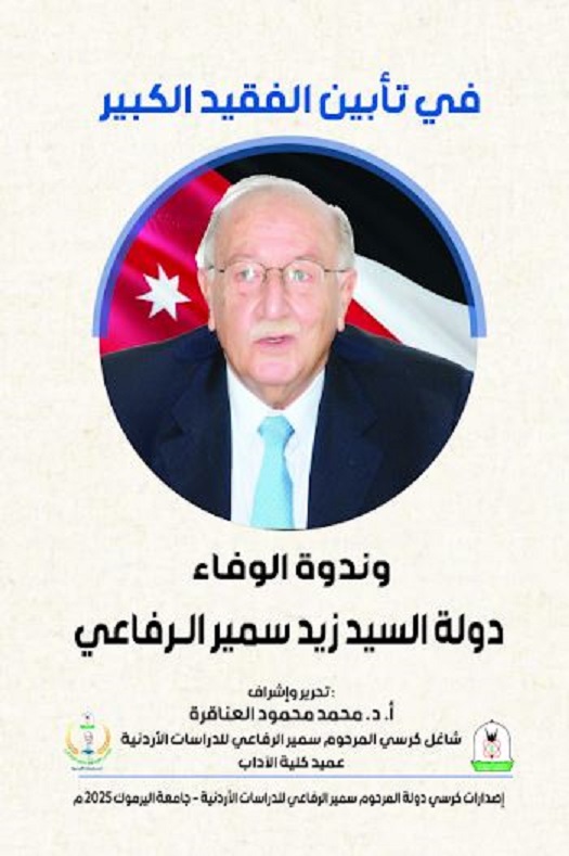 عمون - يُبرزُ كتاب "في تأبين الفقيد الكبير دولة السيد زيد سمير الرفاعي وندوة الوفاء" محطات مفصلية من المسيرة الوطنية والمهنية لشخصية وطنية شكّلت علامة فارقة في مسيرة الدولة الأردنية، في إطار علمي رصين، يعكس روح الوفاء لأهل البذل والعطاء، ويُسهم في دراسة وتحليل تجارب القيادات السياسية الأردنية ضمن منظومة البحث الأكاديمي الرصين.