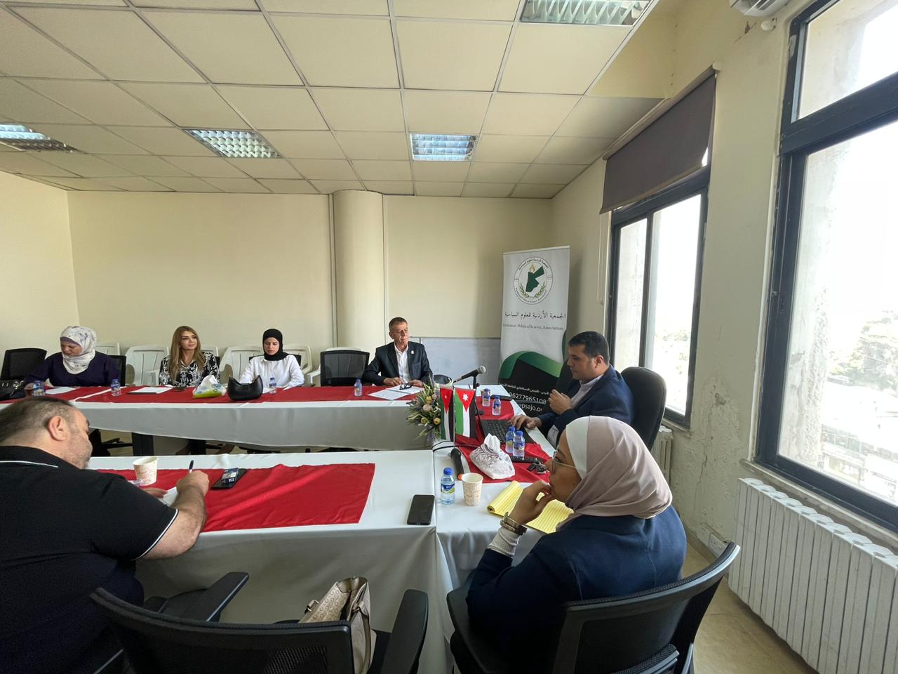 عمون - عقدت الجمعية الأردنية للعلوم السياسية، بالتعاون مع صندوق الملك عبد الله الثاني للتنمية، جلستين تدريبيتين في مقر الجمعية للأسبوع السادس على التوالي، وذلك ضمن مشروع تدريب الحزبيين الذي تنفذه الجمعية بتمويل من الصندوق، في إطار جهودها الرامية إلى تطوير العمل الحزبي وتعزيز قدرات الكوادر الحزبية الأردنية.