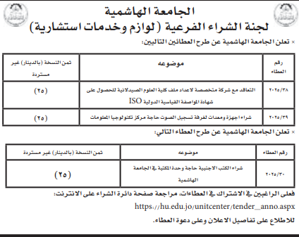 عطاءات صادرة عن الجامعة الهاشمية