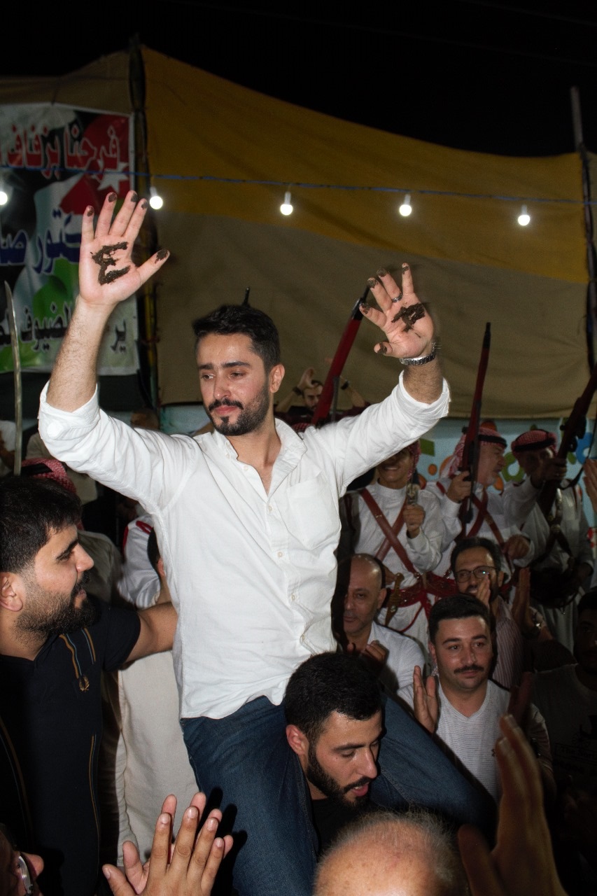 عمون - في حفل مهيب وبهيج وغامر بالفرح، أقام الدكتور صالح سلامة البركات مأدبة عشاء كبرى بمناسبة زفاف نجله المأمون البركات في مدينة اربد.