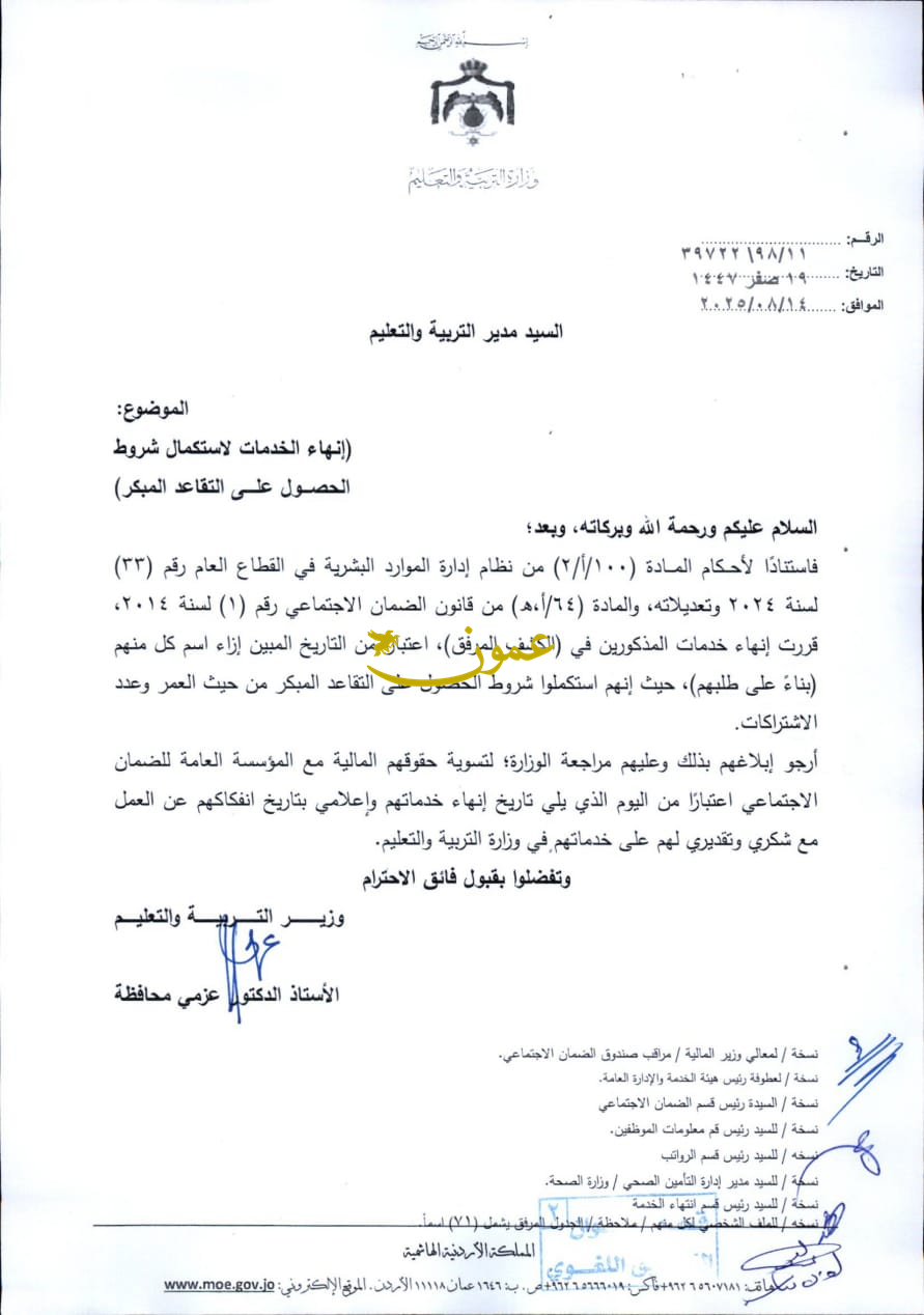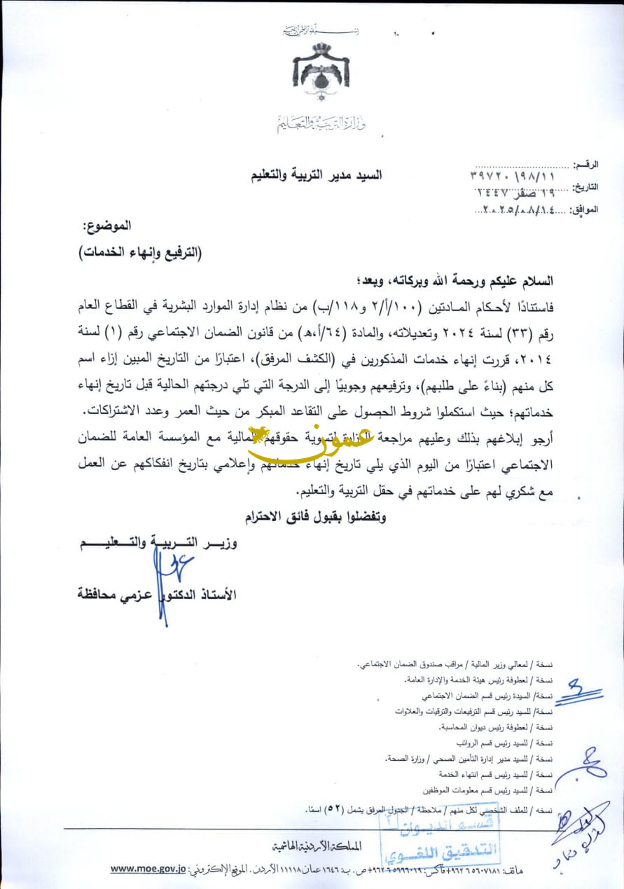ترفيع وانهاء خدمات عشرات الموظفين في التربية (اسماء)14-08-2025 02:09 PM