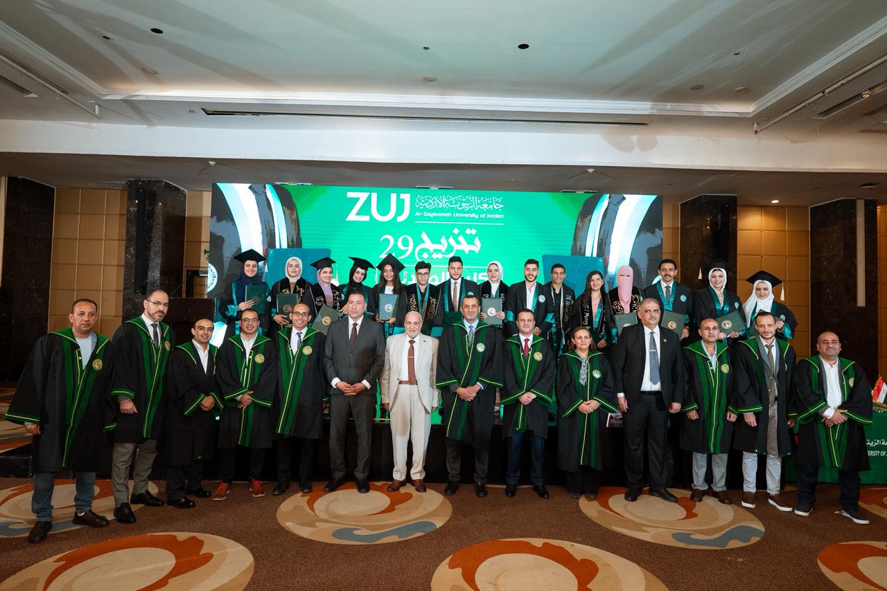 عمون - إحتفلت جامعة الزيتونة الأردنية بتخريج عدد من فرعي الفوج التاسع والعشرين من طلبة كليتي العلوم الطبية التطبيقية والصيدلة المصريين في القاهرة، بحضور كل من الأستاذ الدكتور طارق القرم، نائب رئيس الجامعة، والأستاذة الدكتورة سماح حسني، عميد كلية العلوم الطبية التطبيقية، والأستاذ الدكتور علاء الحسبان، عميد كلية الصيدلة.