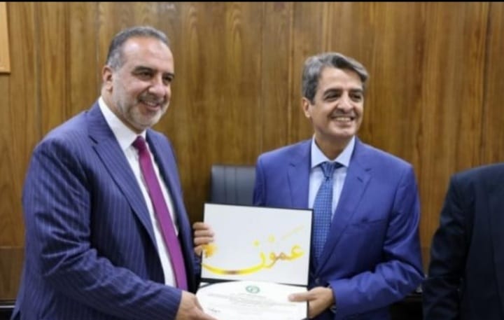 عمون - تسلم النائب السابق احمد رجب الجالودي المصدقة الفخرية باختياره امينا عاما لمجلس الامناء الفخري لجمعية الملتقى الوطني للتوعية والتطوير خلال الاحتفال الذي رعاه وزير الشباب معالي الدكتور رائد العدوان مندوبا عن دولة رئيس الوزراء الدكتور جعفر حسان لتكريم رواد العطاء والانجاز المتميز والمسؤولية المجتمعية الذي نظمته الجمعية بحضور العديد من الشخصيات الرسمية والخاصة والاجتماعية والشبابية . |