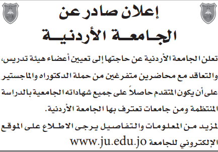 الجامعة الاردنية بحاجة لتعيين أعضاء هيئة تدريسية