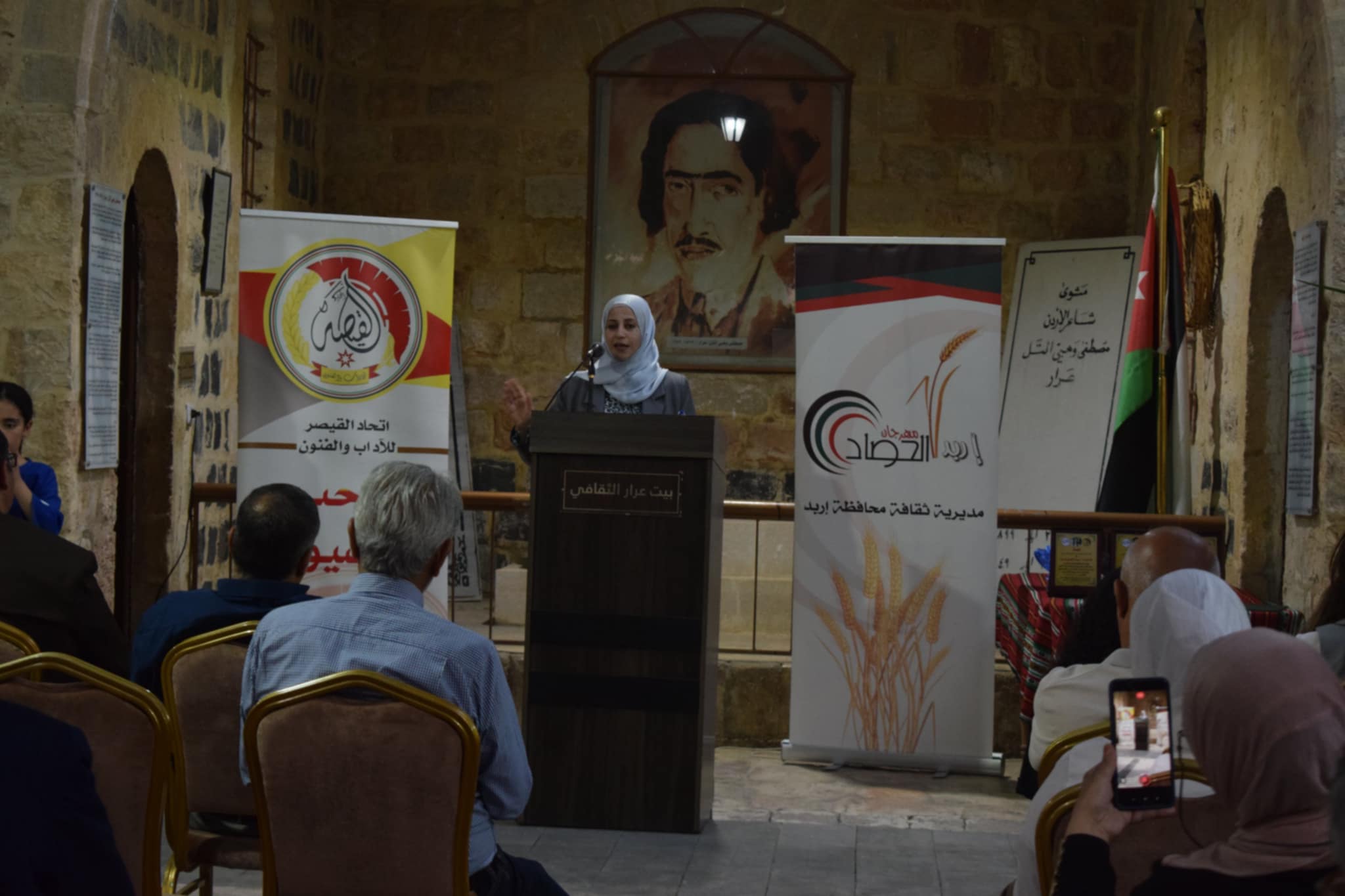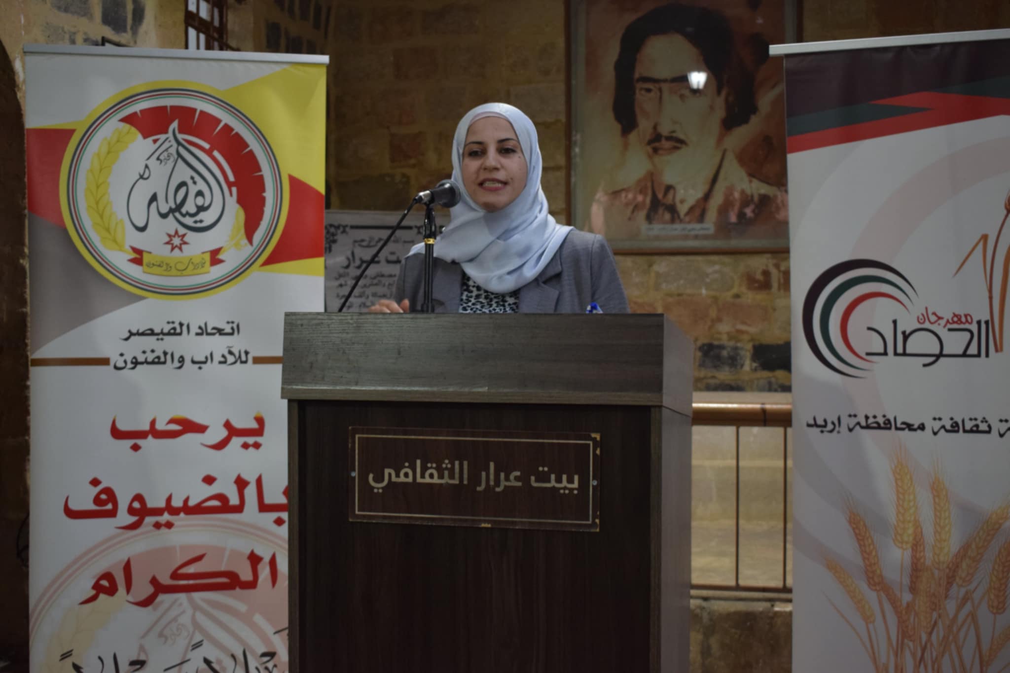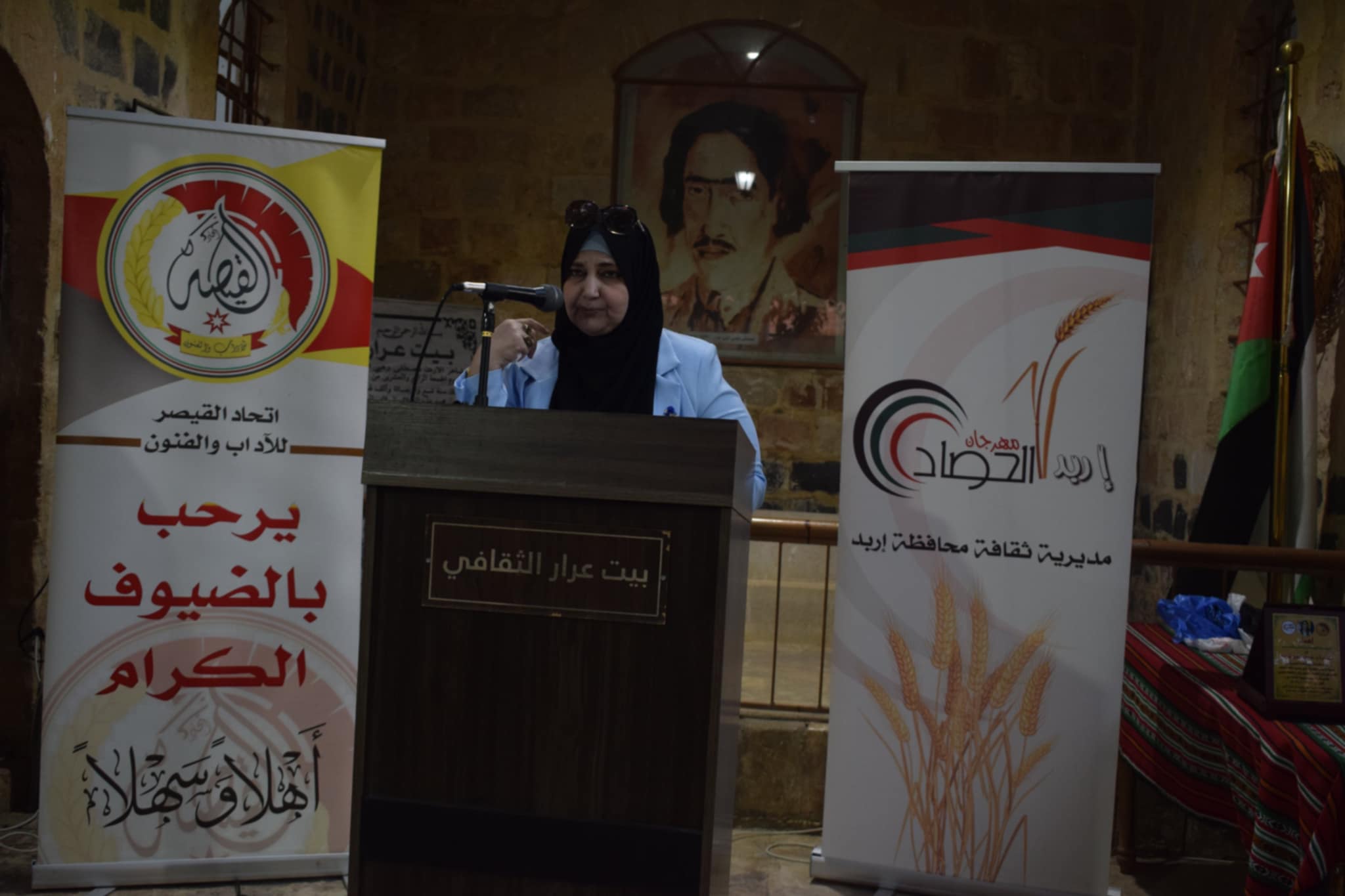 عمون - ضمن عمل اتحاد القيصر للآداب والفنون الثقافي ومشاركته في نشاطات المديرية والوزارة نظم اتحاد القيصر مساء السبت أمسية شعرية عربية ضمن فعاليات مهرجان الحصاد الحادي عشر للثقافة والفنون والذي انطلق يوم الخميس برعاية كريمة من معالي وزير الثقافة وبحضور الأمين العام لوزارة الثقافة حيث تشرف على المهرجان مديرية ثقافة إربد وقد شارك فيها كل من الشاعرة د. ميساء الصح بدارنة من فلسطين والشاعرة د. سماح علايا الخصانة والشاعرة هناء القاسم وشاركهم بالتقديم الأديب رائد العمري رئيس الاتحاد.