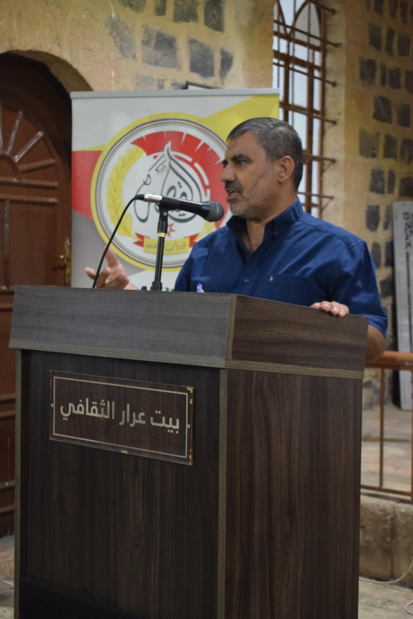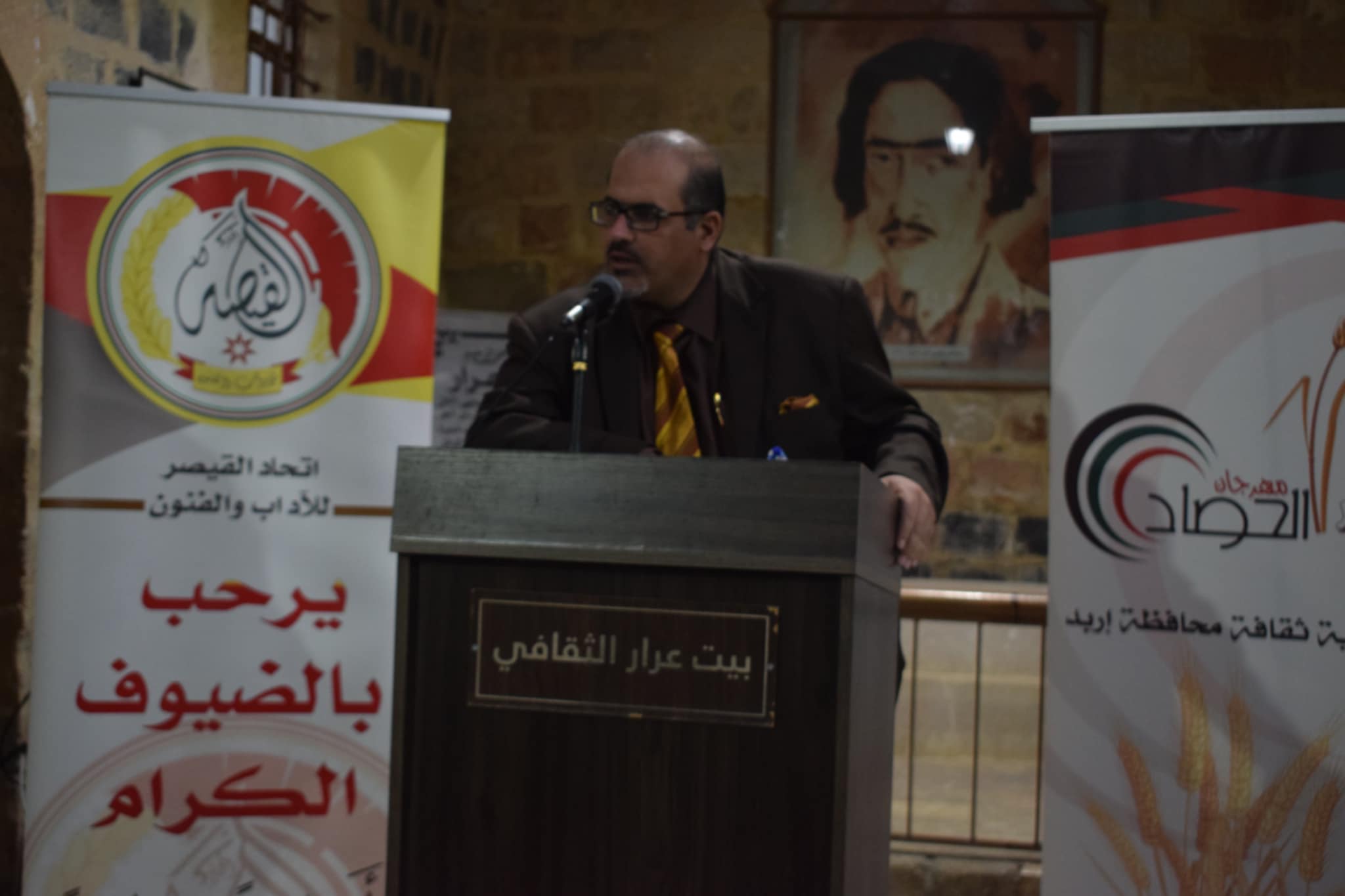 وبدأ العمري كلمته بالحديث عن أهمية مثل هذه الفعاليات التي تجنح نحو الاهتمام بالأدب والتراث والثقافة وتهدف للحفاظ على هويتنا الثقافية والحضارية والتراثية وتسمو بلغتنا وأدبنا وقد تولى اتحاد القيصر هذا الجانب ، وأضاف العمري إننا نسعد دائما بالتشاركية مع وزارة الثقافة ومديرياتها في تنفيذ العمل الثقافي الجاد ، وكم سعدنا على استمرارية التشاركية في مهرجان الحصاد لسنوات متتالية ، وكذلك نلتفت دائما لأن يكون بيننا مشاركون عرب وخاصة الشقيقة فلسطين..