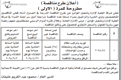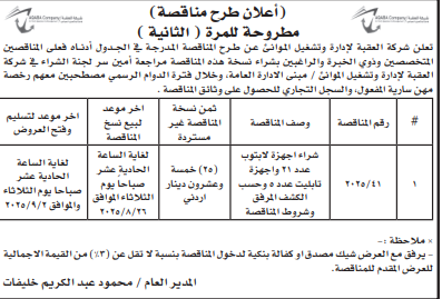 عطاءات صادرة عن شركة العقبة لادارة وتشغيل الموانئ