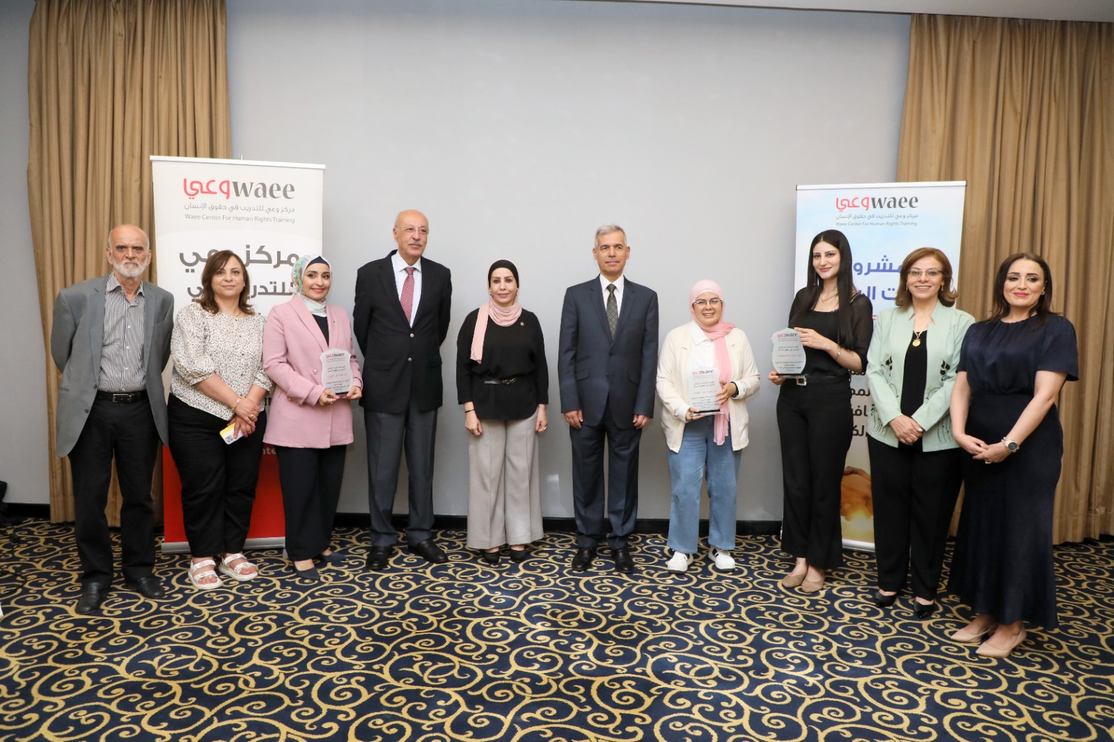 كما تم تكريم أعضاء لجنة التحكيم: الأستاذ يحيى شقير، والأستاذة سمر حدادين، والأستاذة إيمان أبو قاعود تقديرًا لجهودهم في دعم حقوق الإنسان وتقييم الأعمال المشاركة.