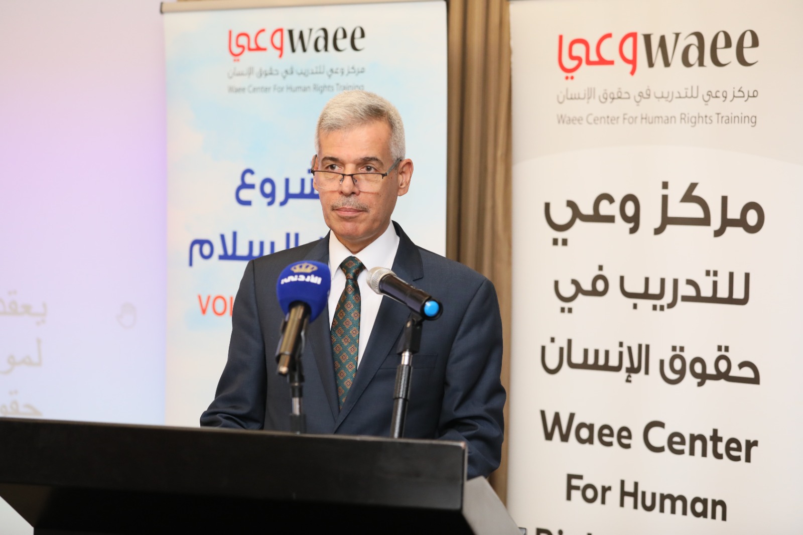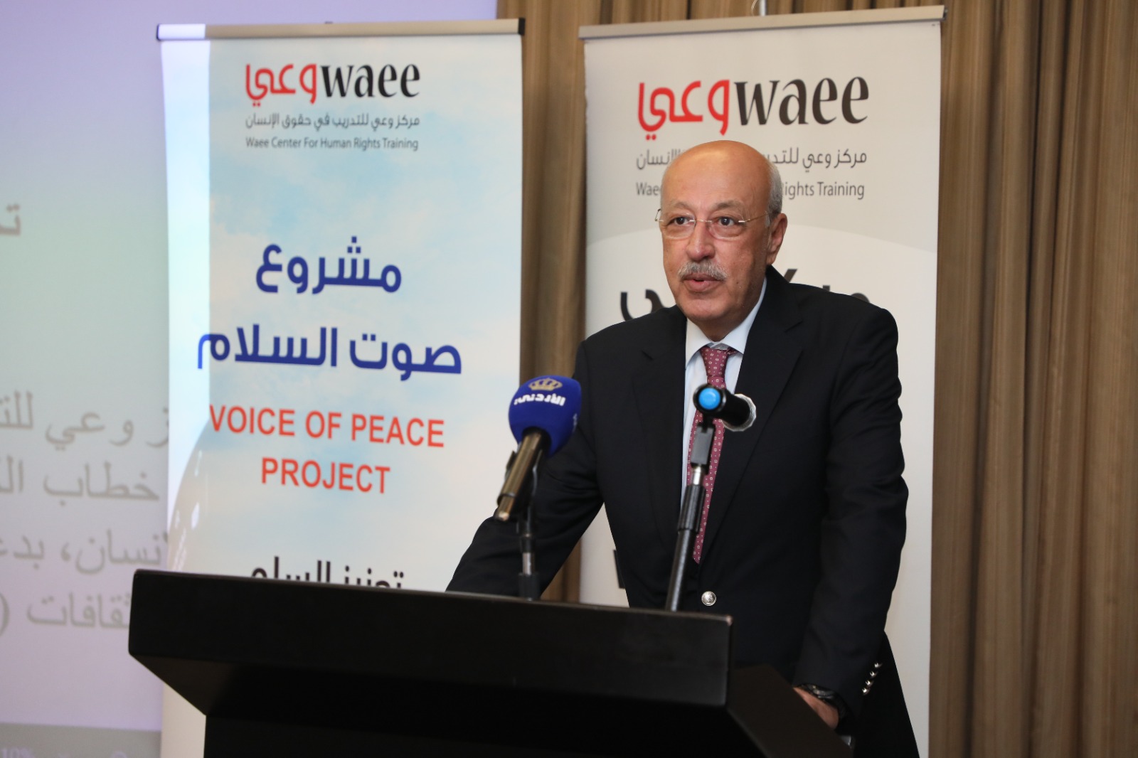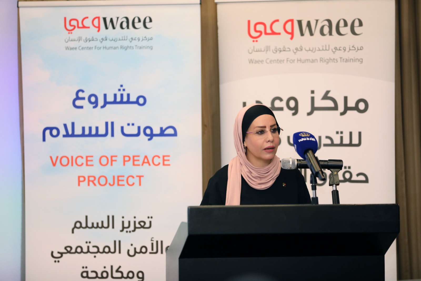 عمون - تحت رعاية الامين العام لوزارة الاتصال الحكومي مندوباً عنه الاستاذ طه الخصاونه مدير الإعلام الرقمي وإنتاج المحتوى، عقد مركز وعي للتدريب في حقوق الانسان الحفل الختامي لمشروع " صوت السلام" بدعم من مركز الملك عبد الله بن عبد العزيز العالمي للحوار بين أتباع الأديان والثقافات (كايسيد).