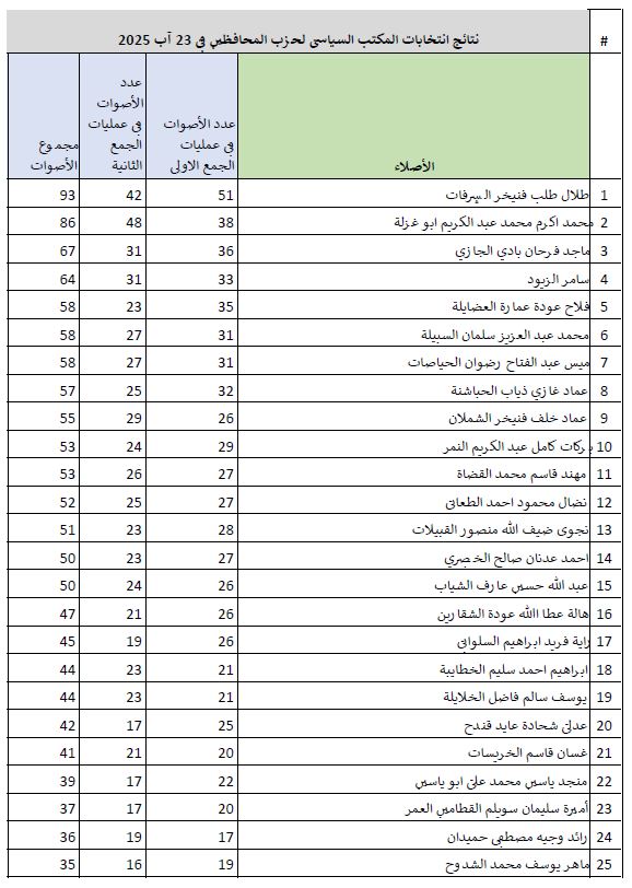 وانتخب الحزب، رفعت الطويل رئيسًا للمجلس الوطني للحزب، في حين انتخب الدكتور طلال الشرفات أمينًا عامًا.