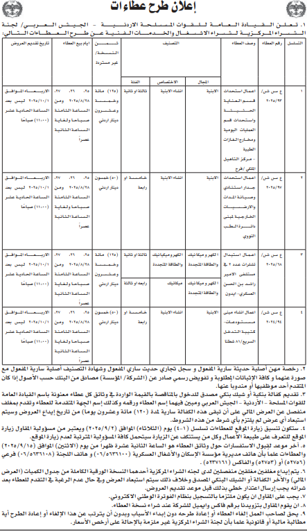 عطاءات صادرة عن القيادة العامة للقوات المسلحة