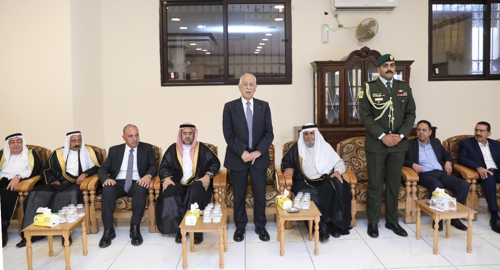 عمون - مندوبا عن جلالة الملك عبدالله الثاني، وسمو الأمير الحسين بن عبدالله الثاني، ولي العهد، قدّم رئيس الديوان الملكي الهاشمي، يوسف حسن العيسوي، الخميس، واجب العزاء لعشائر الشواربة والطراونة والشوبكي وجنكات والشوابكة.
