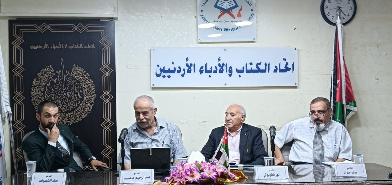 عمون - نظم اتحاد الكتاب والأدباء الأردنيين أمسية شعرية، شارك فيها الشعراء: "أنور القريوتي، عبد الرحيم محمود، ماهر حداد" وقام بإدارة الأمسية الشاعر "بهاء الشطرات".