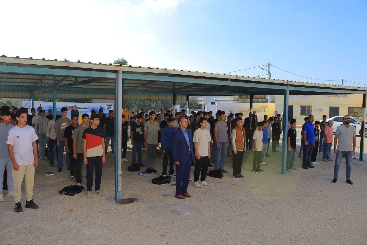 واستهل الدكتور المساعيد جولته بمشاركة طلبة مدرسة الحمراء الثانوية للبنين فعاليات الطابور الصباحي، حيث ألقى كلمة قصيرة أعرب فيها عن فخره بالتزام الطلبة وانضباطهم، مؤكدًا أهمية بناء جيل واعٍ ومثقف يتحمّل مسؤولياته تجاه الوطن والتأكيد على متابعة حضور وغياب الطلبة وتفعيل المبادرات.