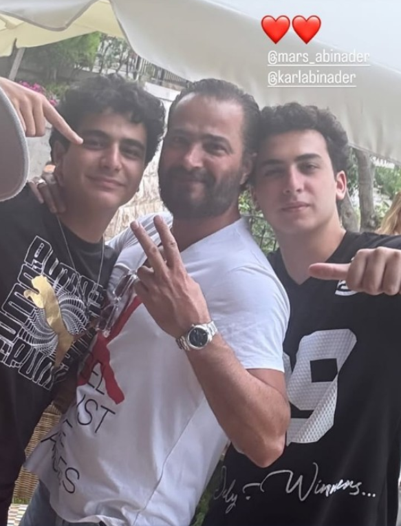عمون - نشر الممثل جيسكار أبي نادر صورة على خاصية "الستوري" في حسابه على إنستغرام، ظهر فيها برفقة ابنيه مارسيل وكارل. |